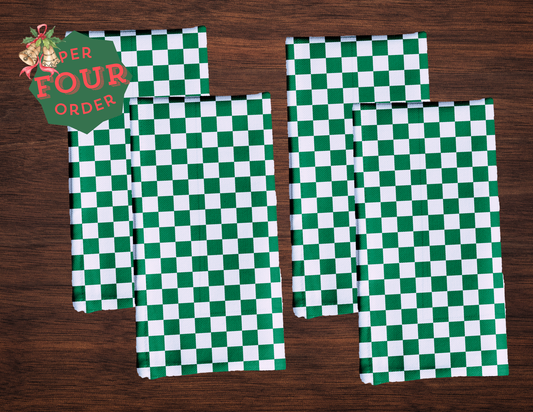 Green & White Check Polyester Napkins | Christmas Holiday Décor, Rustic Farmhouse Cloth Napkin Set, Reusable Holiday Linens