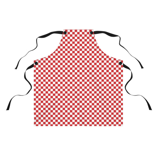 Red & White Check Holiday Apron | Lightweight 100% Polyester Twill, Detachable Black Twill Straps