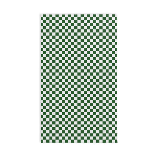 Green & White Check Holiday Hand Towel | Soft Cotton Back, Polyester Front, Festive Home Décor