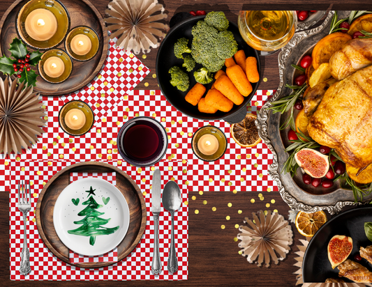 Each piece — whether it’s a table runner, napkin set, placemat bundle, apron, pillow, or luxury wrapping paper — is crafted to deliver boutique-level polish with festive flair. Think cabin-cozy, photo-ready, and utterly versatile. Style it rustic for Christmas brunch, glam it up for New Year’s Eve, or keep it out year-round as a crisp, classic accent.