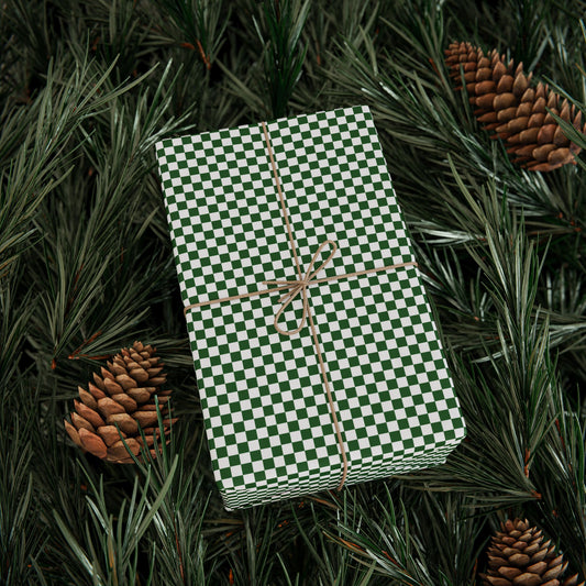 Green & White Check Wrapping Paper | Luxury Matte or Glossy Gift Wrap, 90gsm Fine Art Paper, 3 Sizes