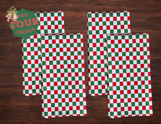 Red Green & White Gingham Polyester Napkins | Christmas Holiday Cloth Napkin Set, Festive Farmhouse Table Décor