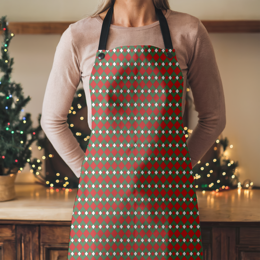 Fancy Argyle Holiday Apron | Lightweight 100% Polyester Twill, Detachable Black Twill Straps