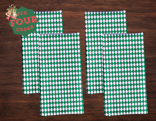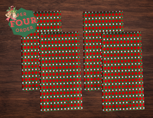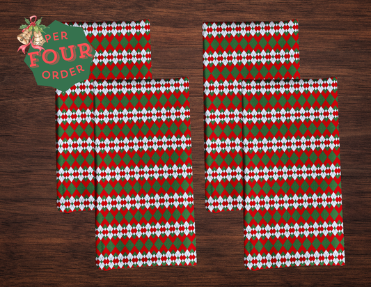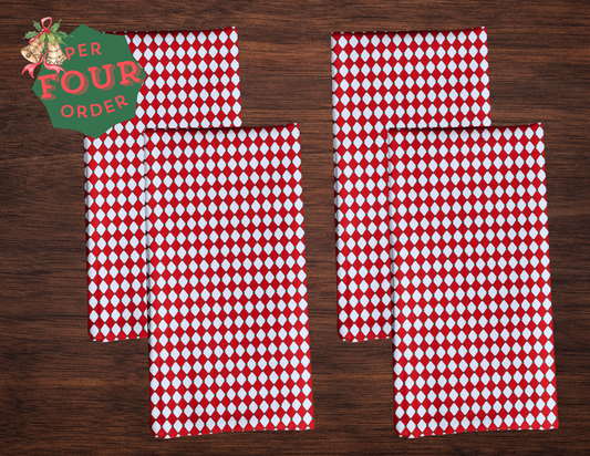 Fancy Red Green & White Argyle Polyester Napkins | Christmas Holiday Cloth Napkin Set, Festive Farmhouse Dining Décor