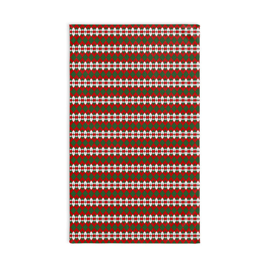 Fancy Argyle Holiday Hand Towel | Soft Cotton Back, Polyester Front, Festive Home Décor