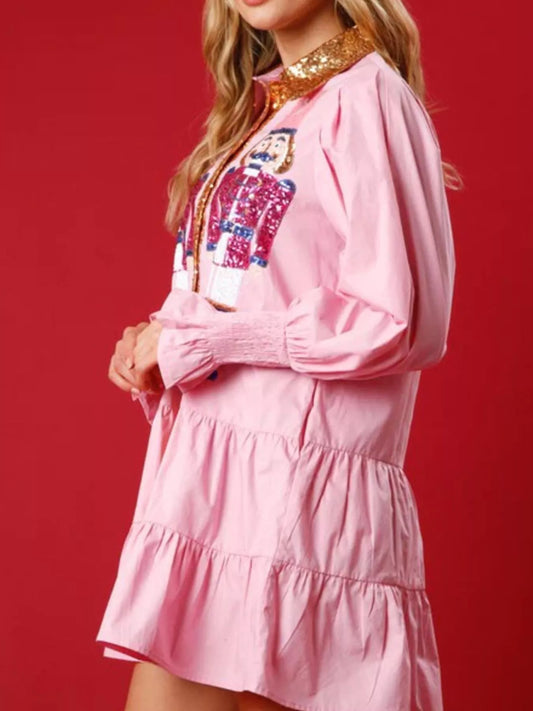 Full Size Christmas Sequin Nutcracker Tiered Shirt Dress Plus Size