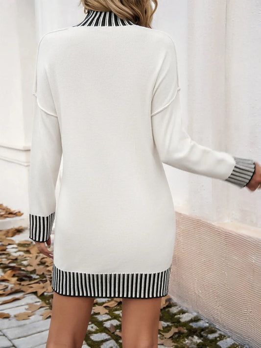 Devine Striped Mock Neck Long Sleeve Sweater Dress