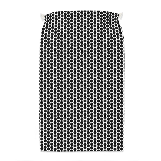 White Polka Dot on Black All-Over Print Reusable Cloth Gift Sack | Large Drawstring Zero Waste Holiday Wrapping