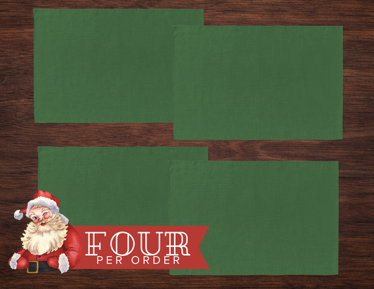 Green Holiday Placemat Set | 4 Washable Placemats, Festive Christmas Dining Table Decor
