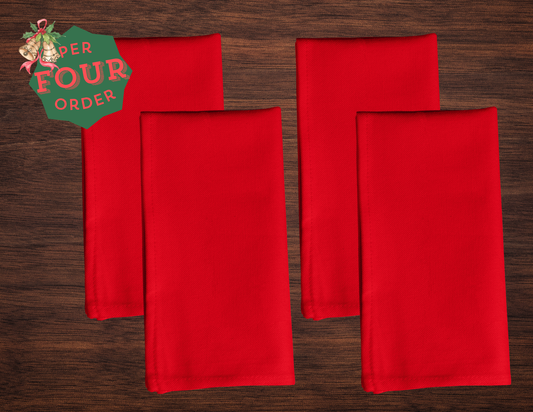 Red Holiday Napkin Set | 4 Washable Cloth Napkins, Festive Christmas Table Decor