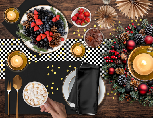 Black Holiday Placemat Set | 4 Washable Placemats, Chic Christmas Dining Table Decor