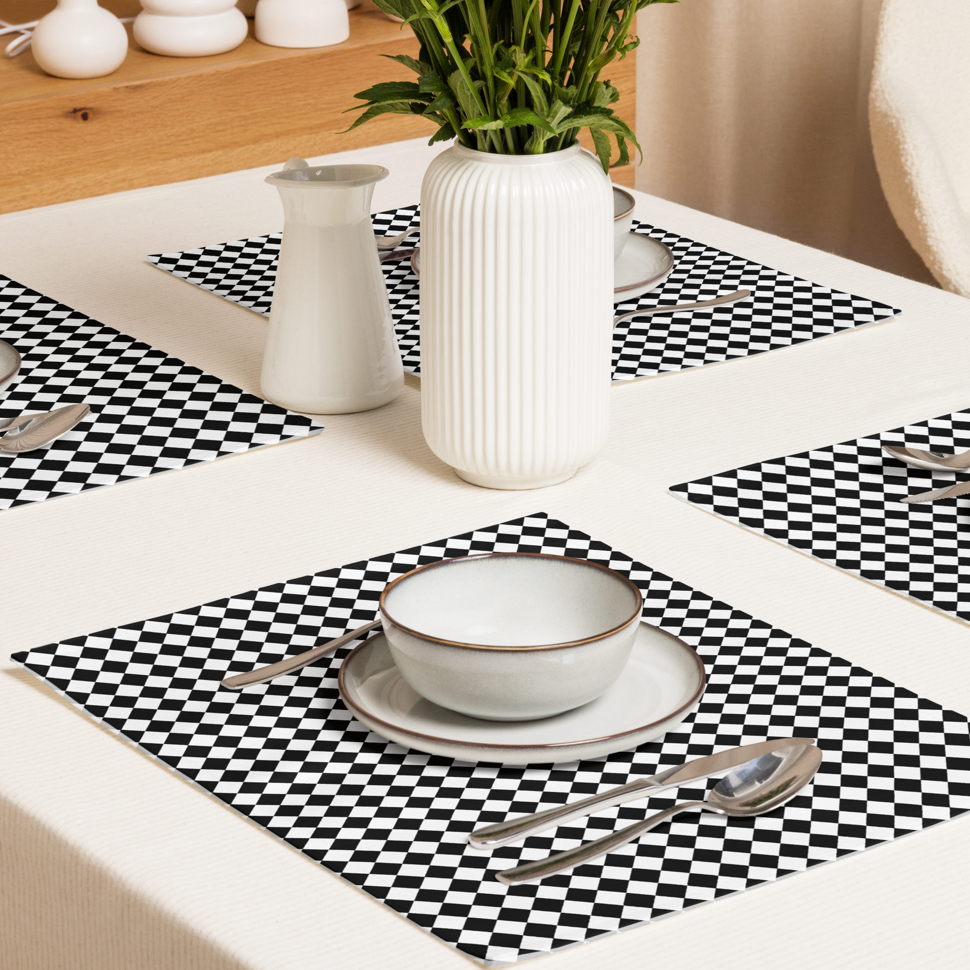 Black & White Argyle Polyester Placemats | Christmas Holiday Table Décor, Elegant Diamond Check Dining Mat Set