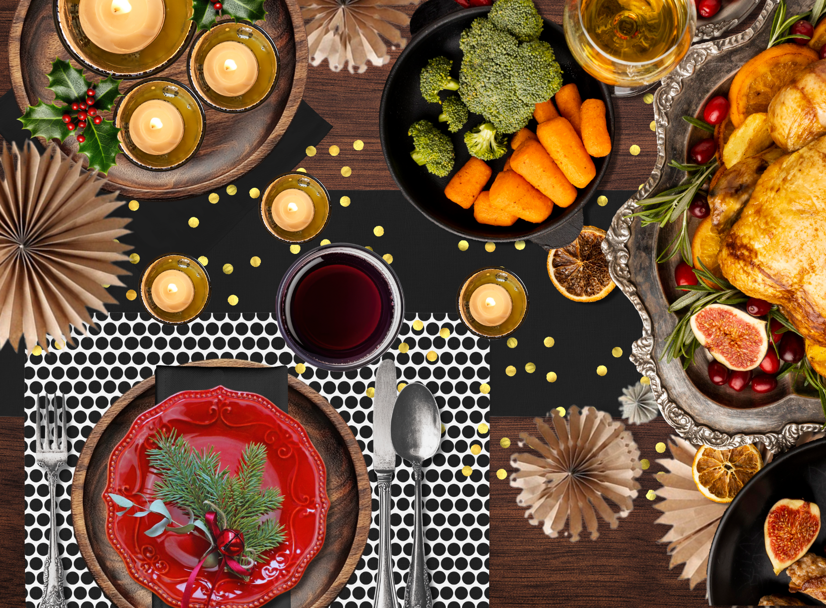 ✔️ Coordinates with Black Polka Dot runners + napkins