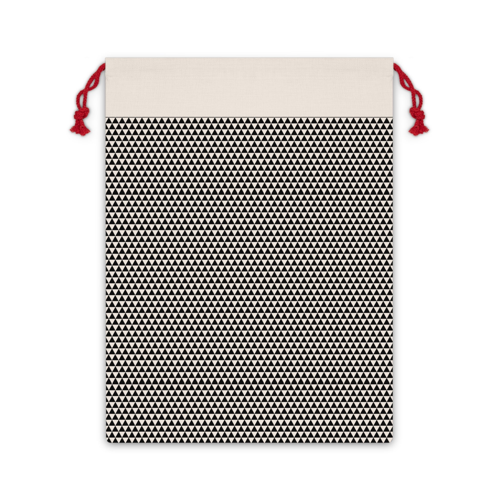 Bold angles, modern vibes, and zero waste. This triangle-pattern gift sack is made for larger gifts and repeat celebrations. The roomy design fits clothing, books, or bundled surprises, while the red drawstring keeps everything secure. A reusable alternative to disposable wrapping paper that looks as good as it performs.