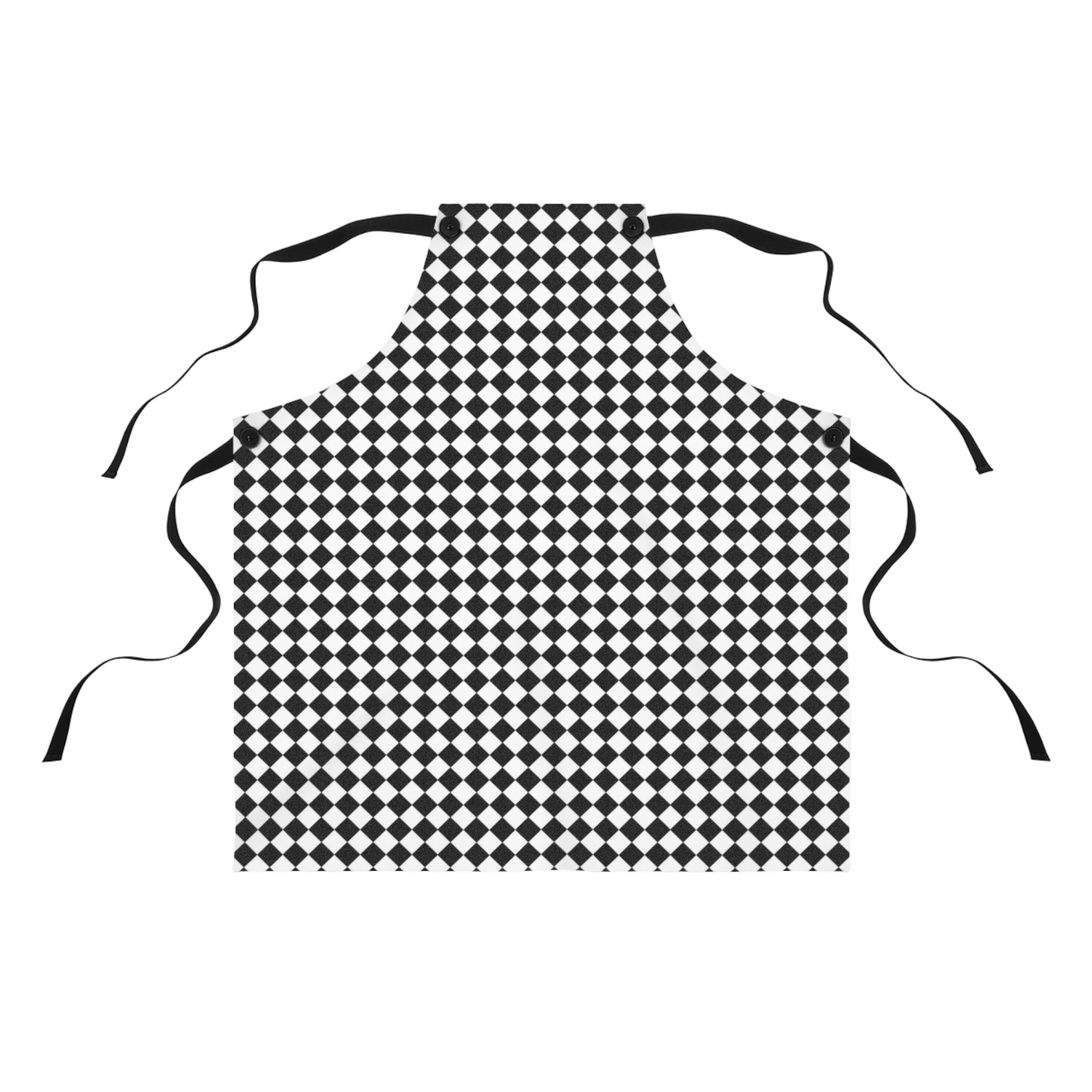 Black & White Argyle Holiday Apron | Lightweight 100% Polyester Twill, Detachable Black Twill Straps