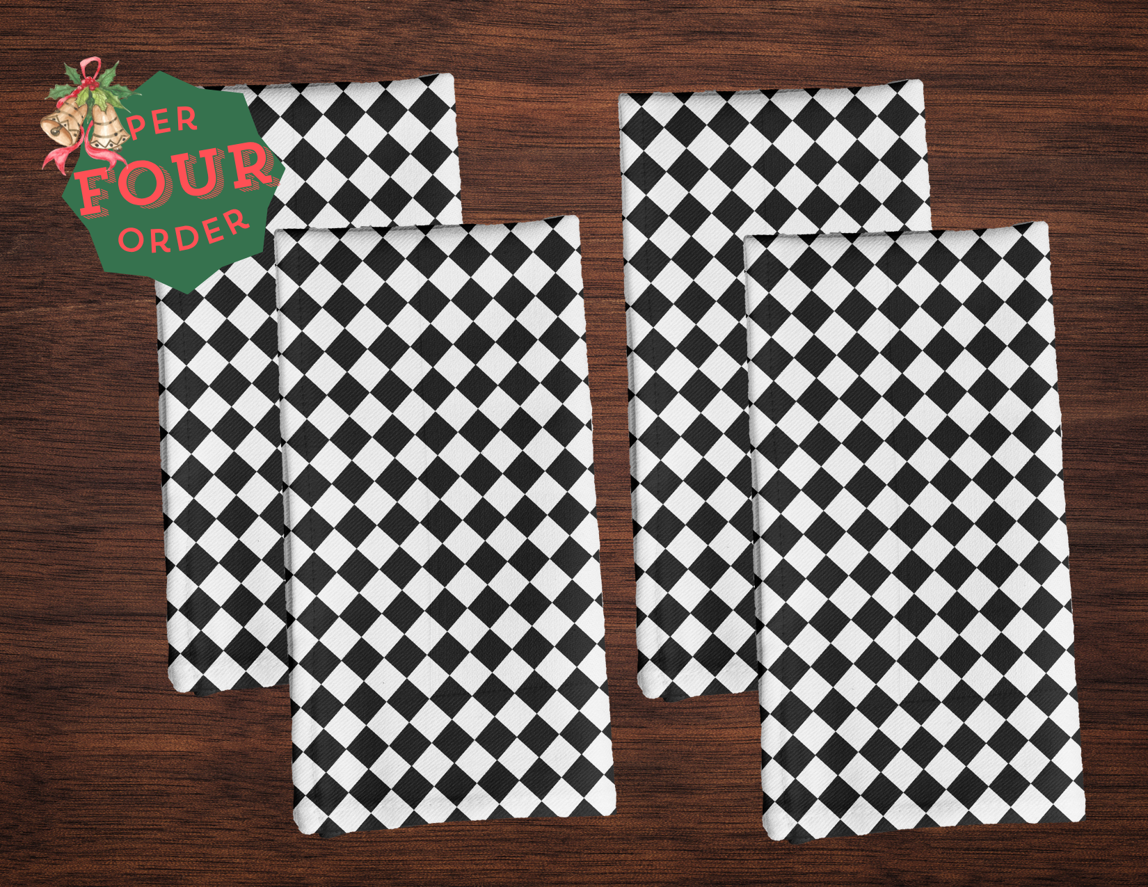 Black & White Argyle Polyester Napkins | Christmas Holiday Cloth Napkin Set, Elegant Farmhouse Dining Décor