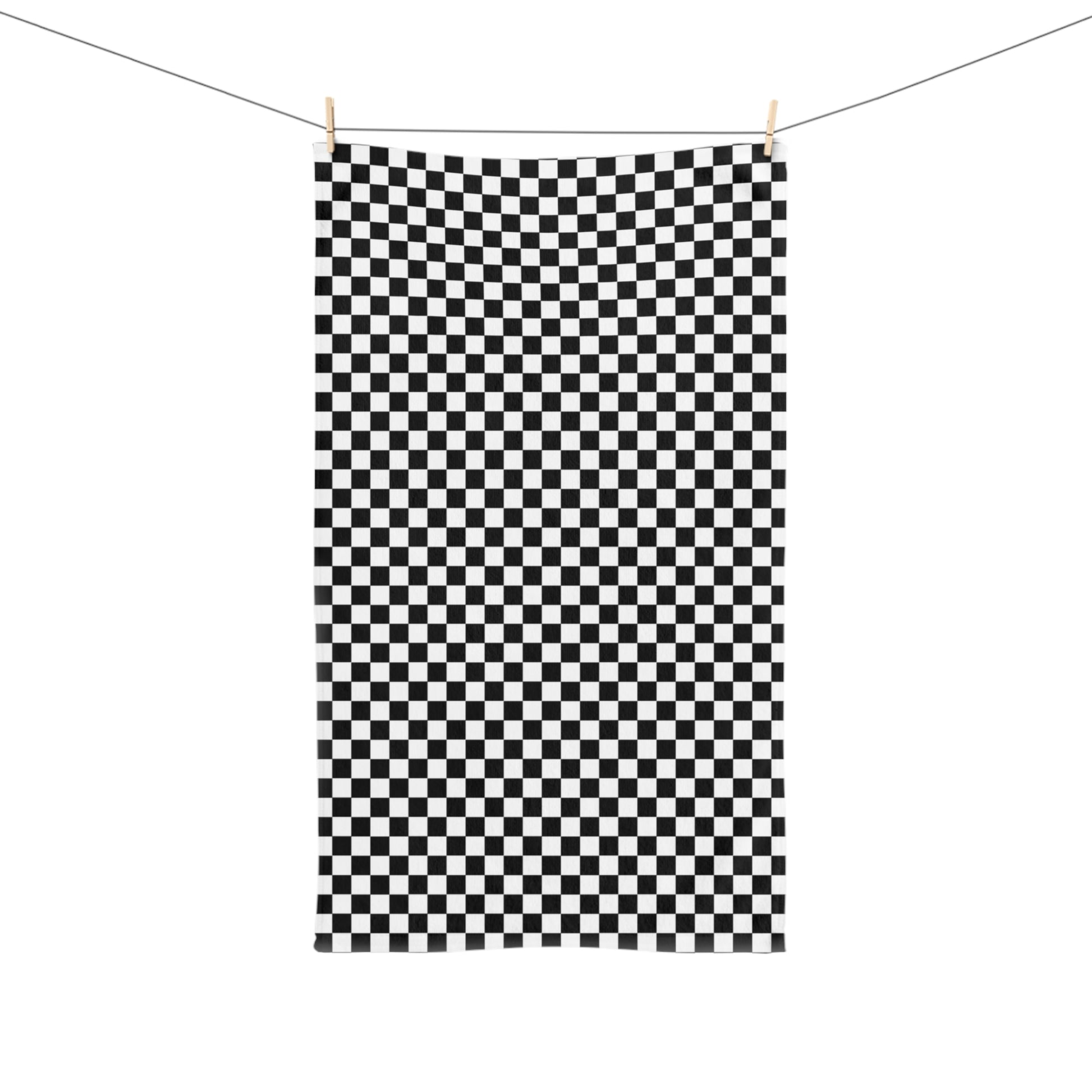 Black & White Check Holiday Hand Towel | Soft Cotton Back, Polyester Front, Festive Home Décor
