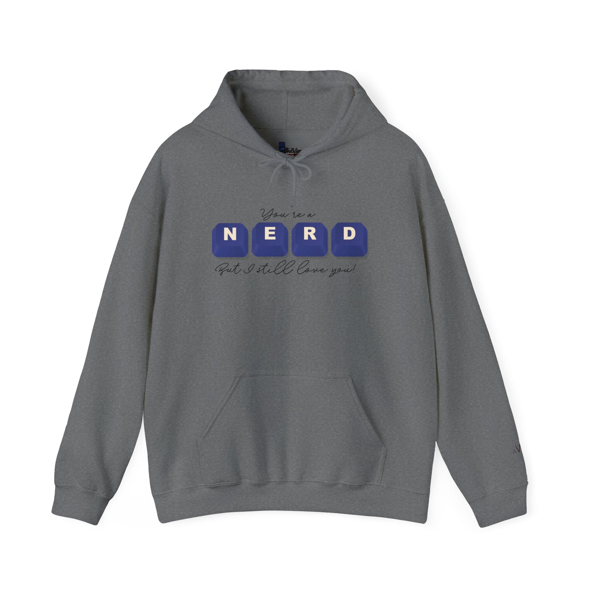 Show your special someone just how much you adore them, quirks and all, with this playful and cozy hoodie. Featuring the bold, oversized word "NERD" in single key caps, this sweatshirt celebrates the beauty of being yourself—even if you're a little geeky. Whether they're into gaming, comics, tech, or all things nerdy, this hoodie is the perfect way to say “I love you” in a fun and stylish way.