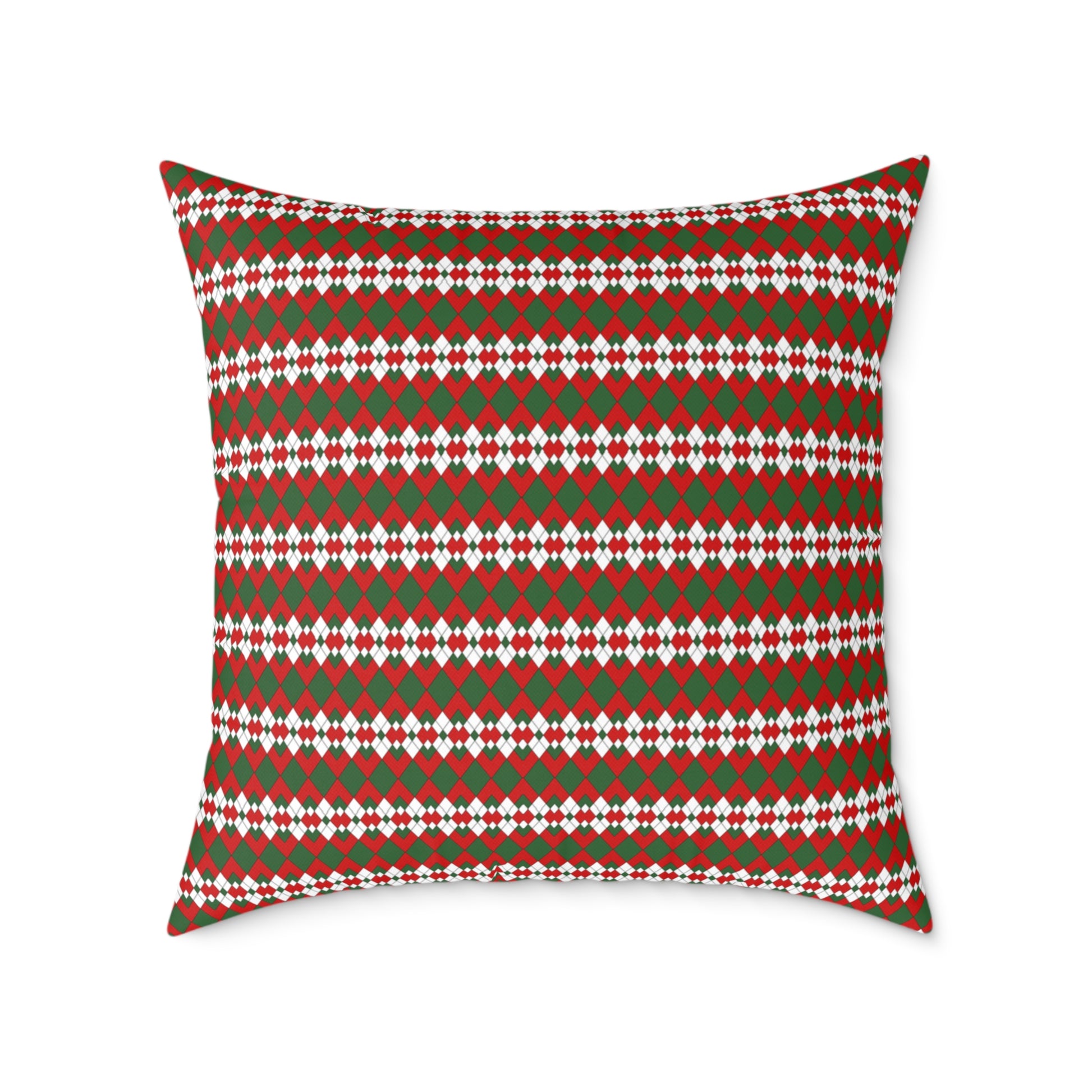 Extra Argyle Christmas Decorative Pillow | Double‑Sided Poly Canvas Cushion, Vibrant Holiday Décor, 5 Sizes