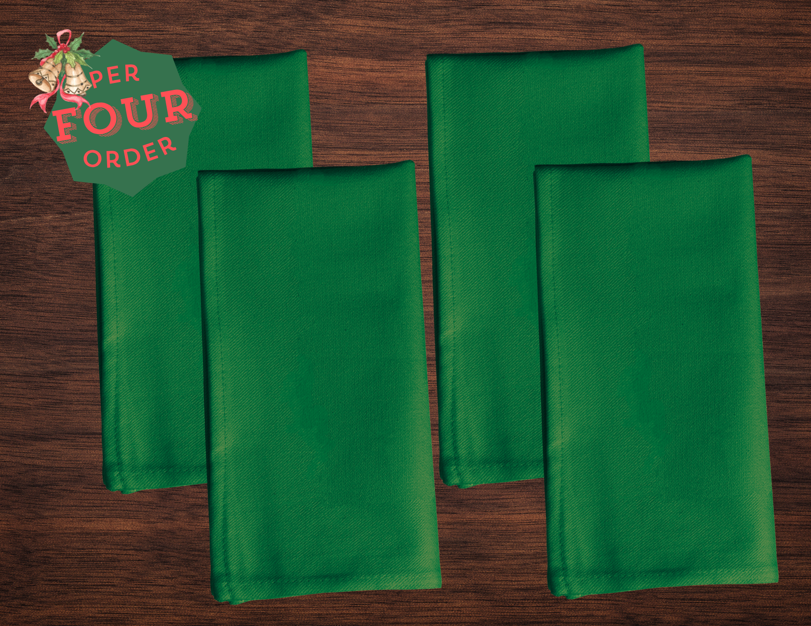 💚🎄 *For tables that sleigh without trying too hard.* The **Solid Green Napkin Set** brings cozy cheer to every meal. Four washable napkins crafted from soft, wrinkle-resistant polyester—because merry should also mean effortless.