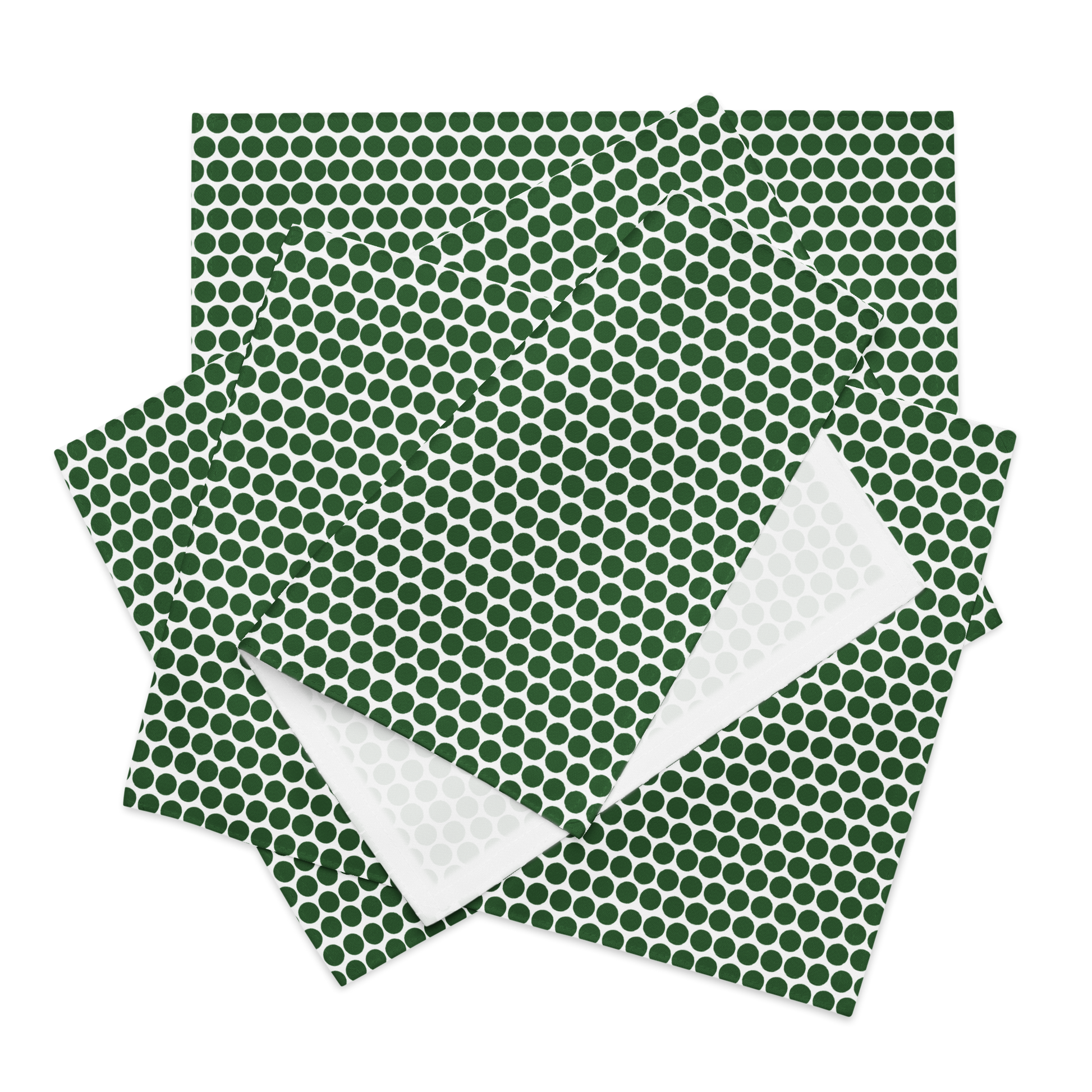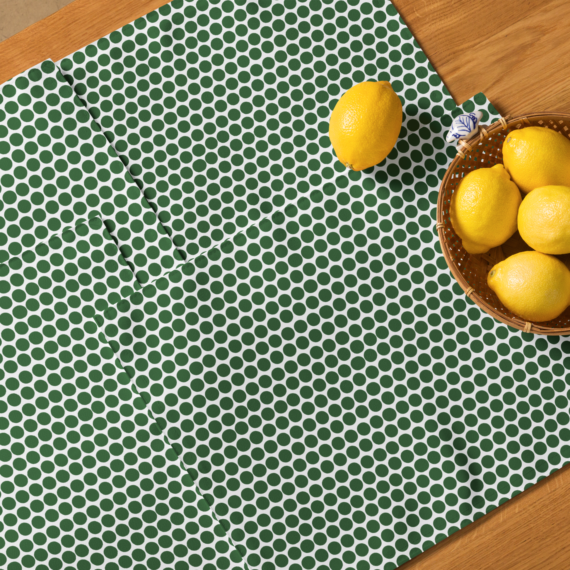 Bring merry vibes to your table with Green Polka Dot Polyester Placemats. Fun, fresh, and holiday-bright, they’re the playful finishing touch for festive meals. Pair with matching runners + napkins for a full holiday look.