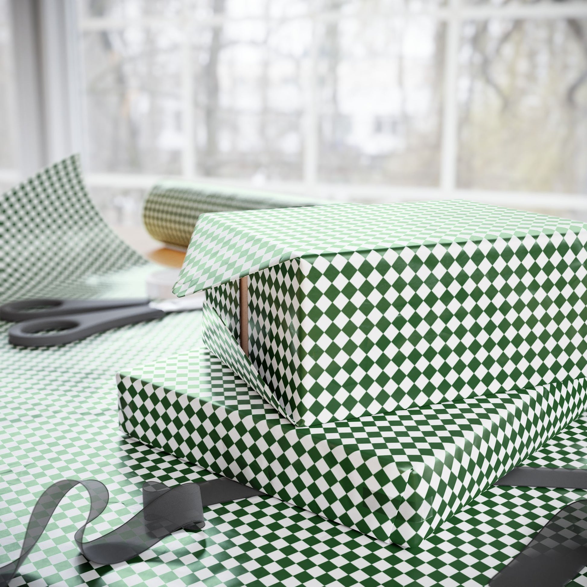 Green & White Argyle Christmas Wrapping Paper | Luxury Matte or Glossy Gift Wrap, 90gsm Fine Art Paper, 3 Sizes