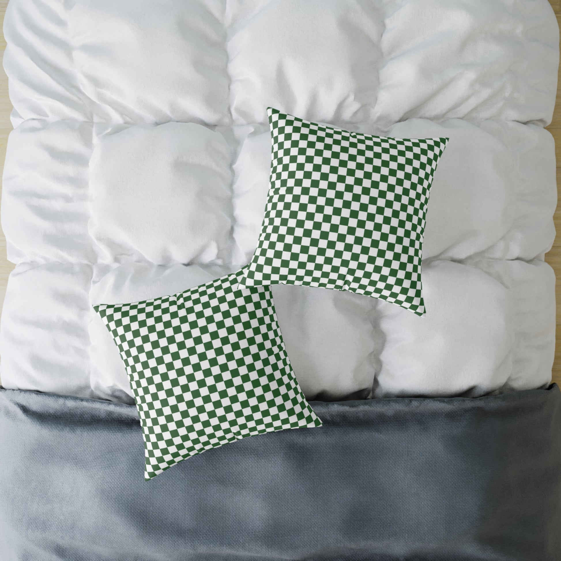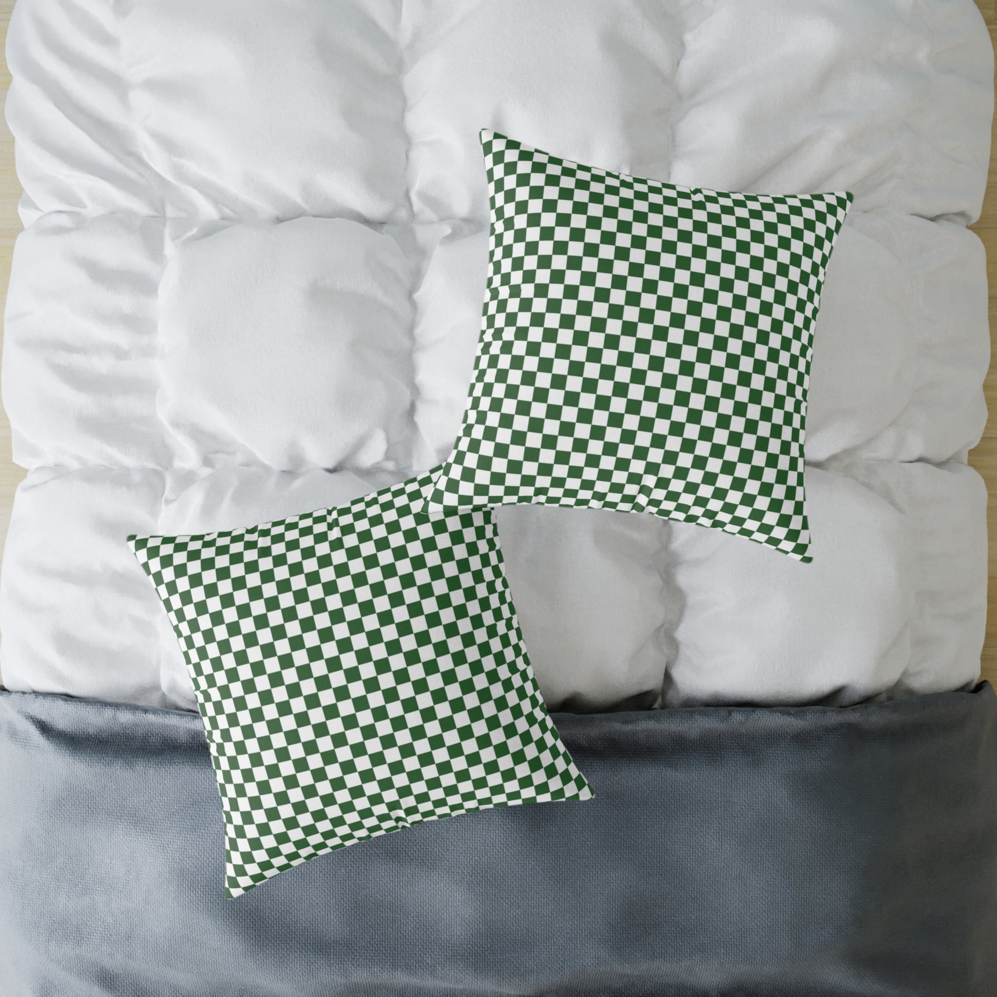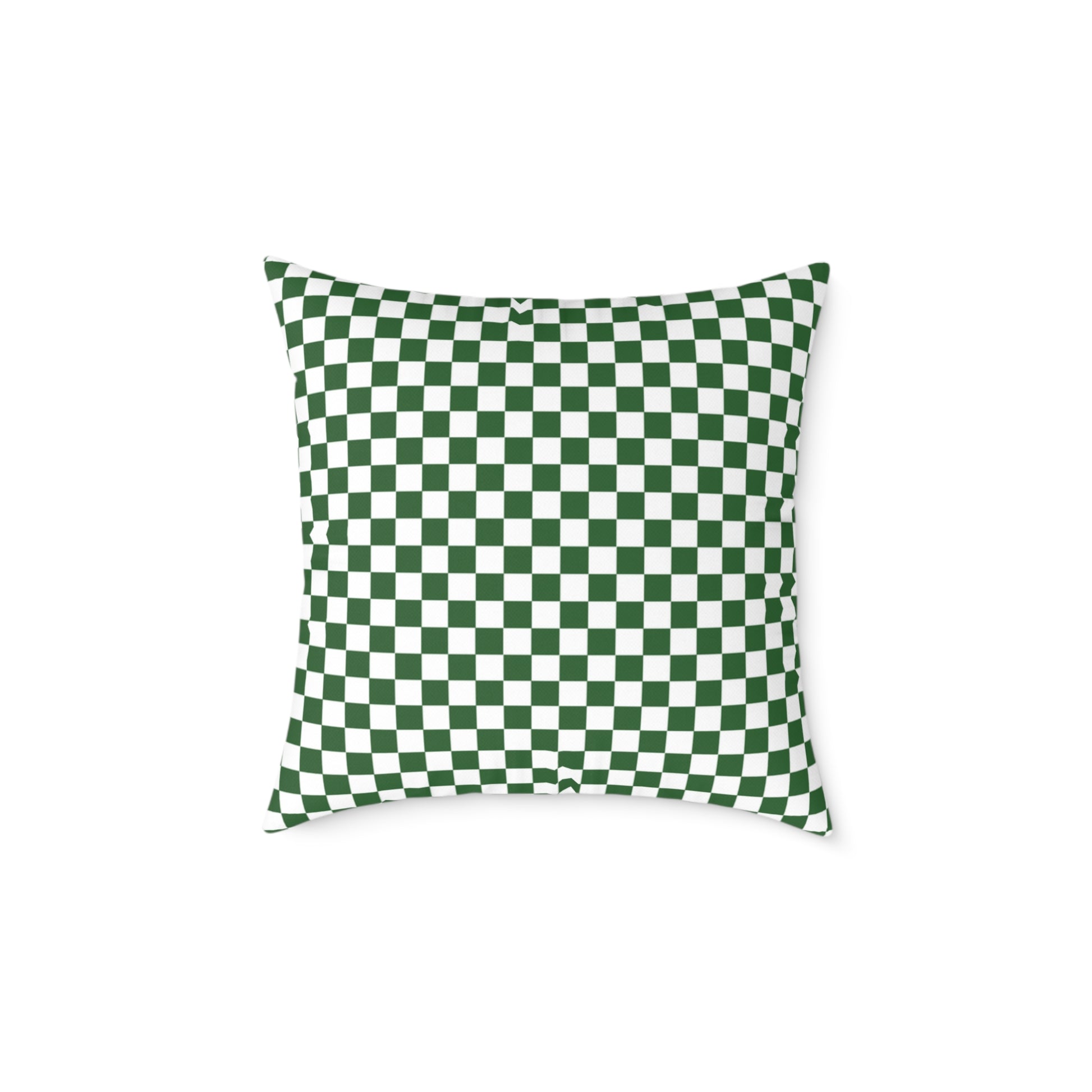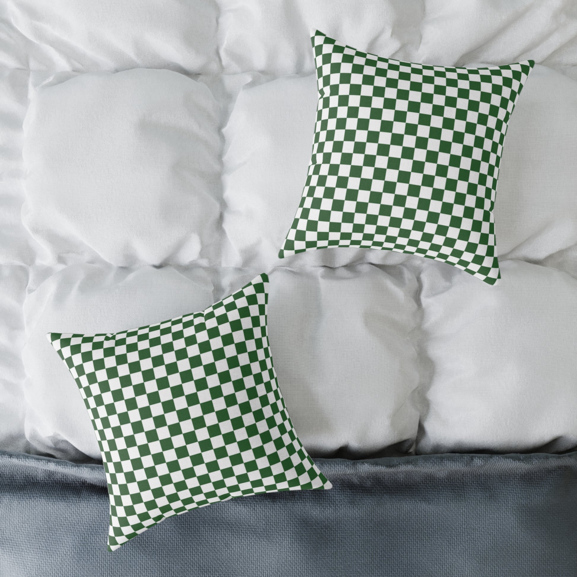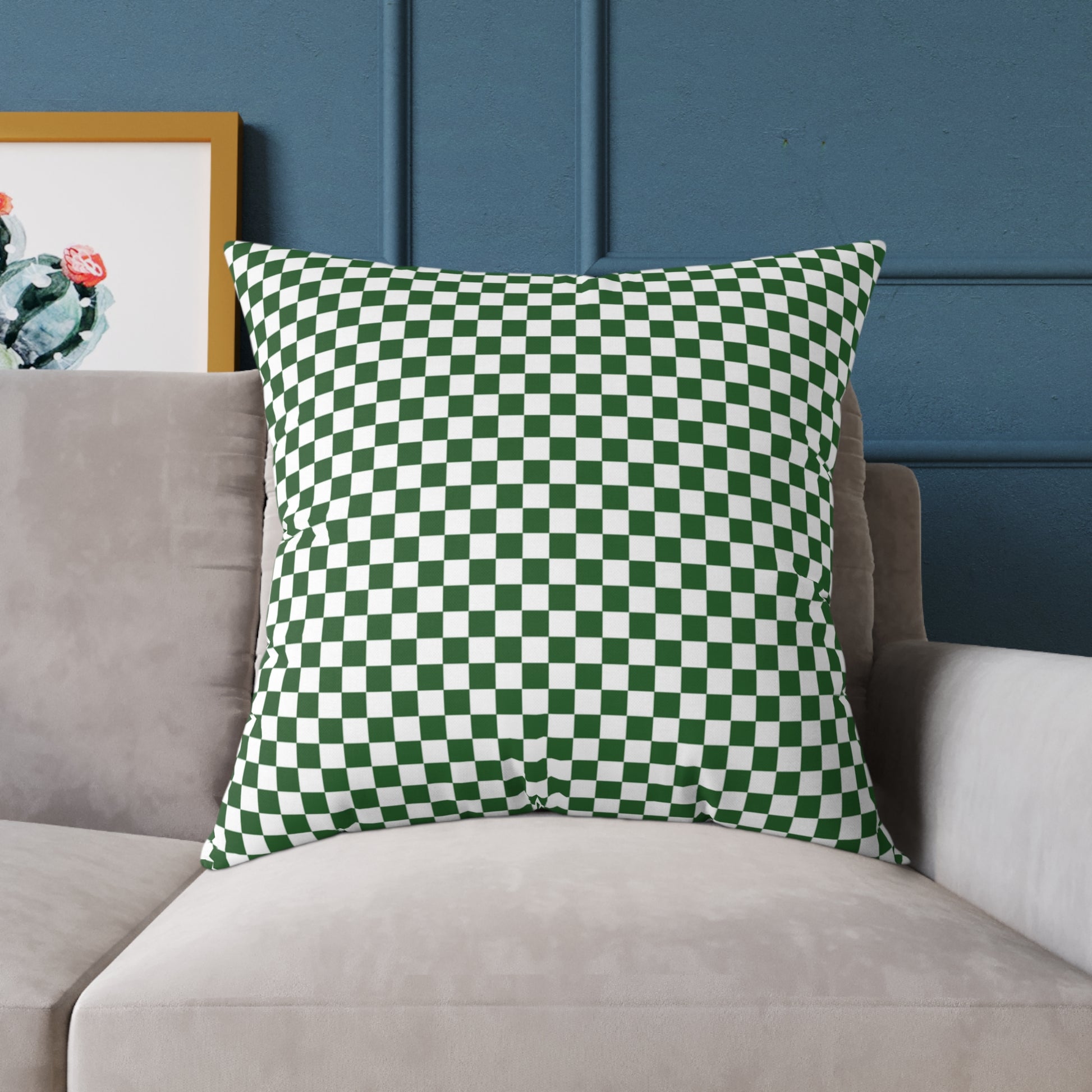 Green & White Check Christmas Decorative Pillow | Double‑Sided Poly Canvas Cushion, Vibrant Holiday Décor, 5 Sizes