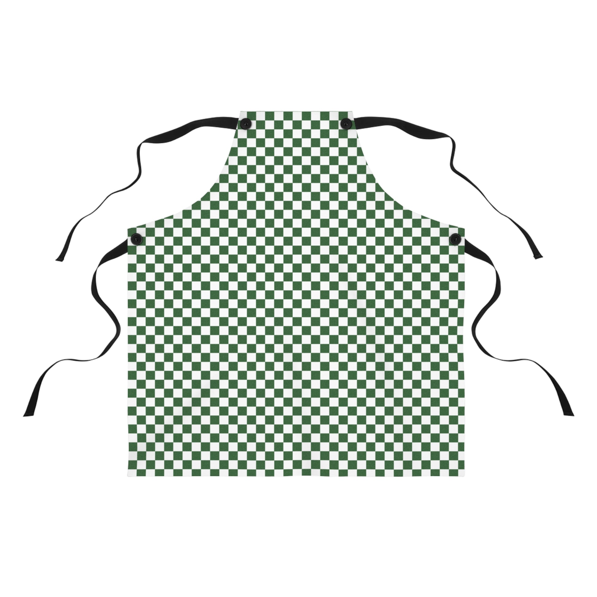 Green & White Check Holiday Apron | Lightweight 100% Polyester Twill, Detachable Black Twill Straps