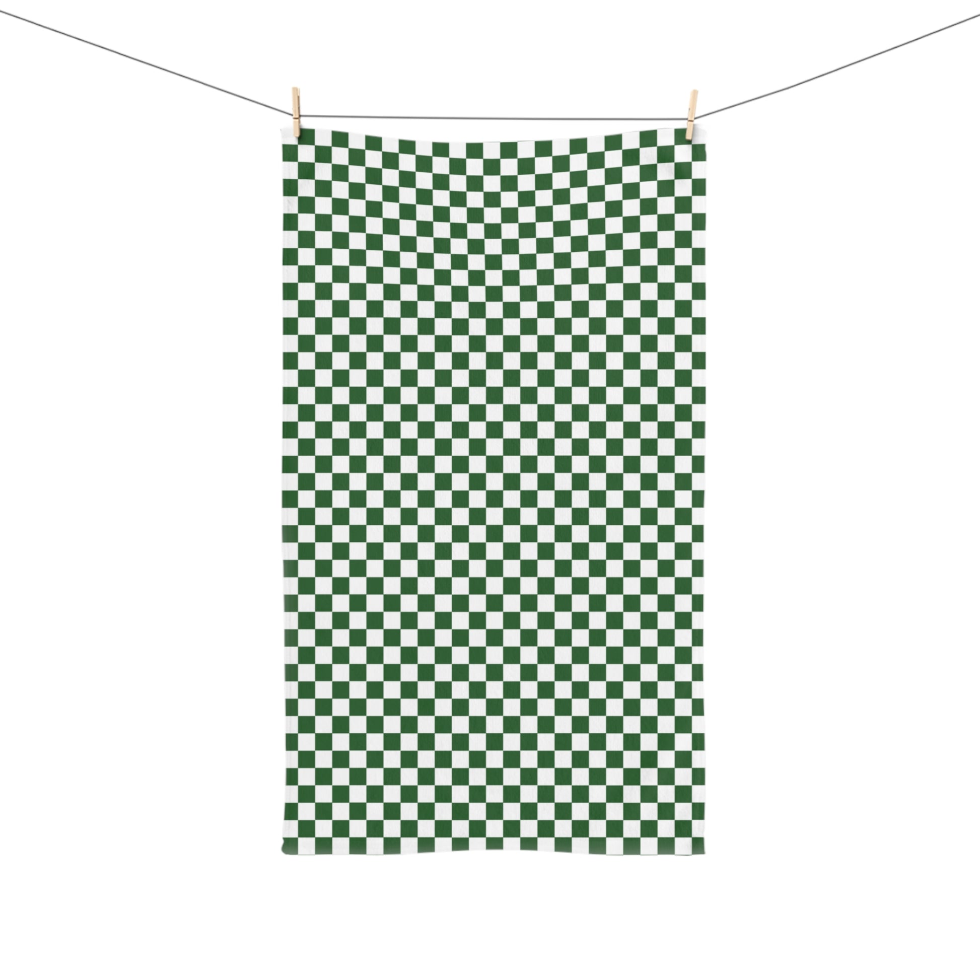 Green & White Check Holiday Hand Towel | Soft Cotton Back, Polyester Front, Festive Home Décor