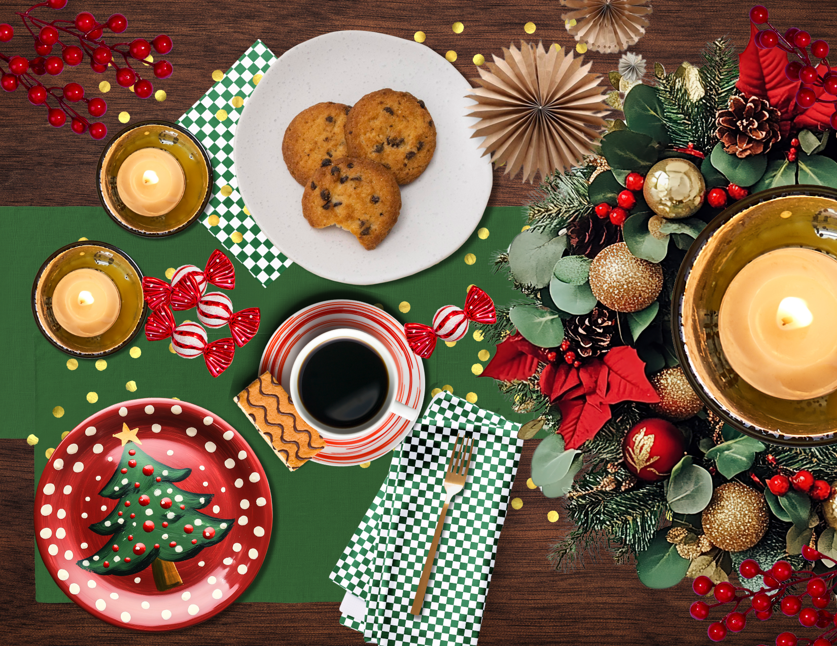 Give your holiday meals a festive upgrade with Green & White Check Polyester Napkins. Playful yet timeless, these napkins match our table runner for the ultimate holiday table glow-up. They’re durable, washable, and reusable year after year—so your holiday cheer never skips a beat.