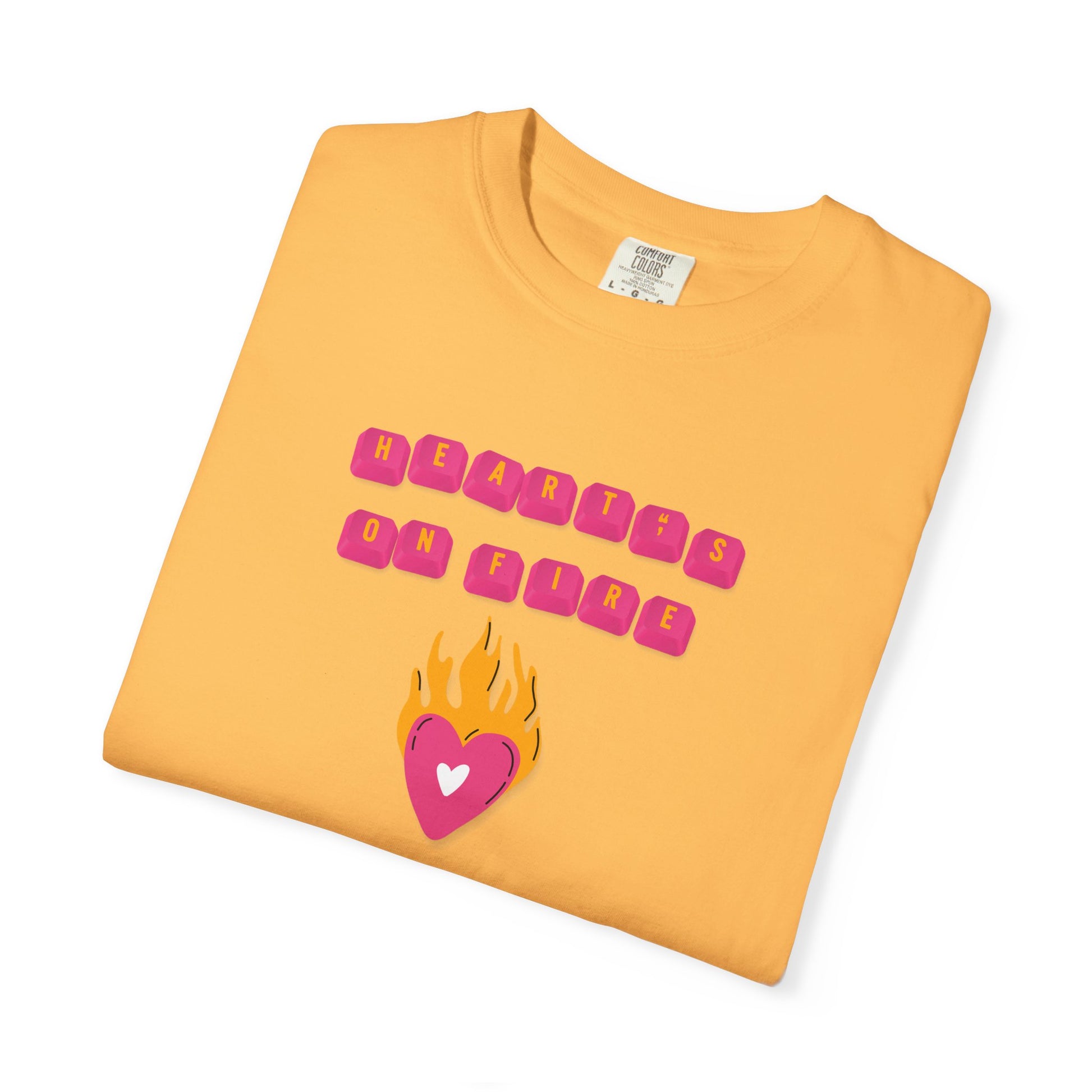 HEART'S ON FIRE Key Caps Flaming Heart Unisex Garment-Dyed T-shirt