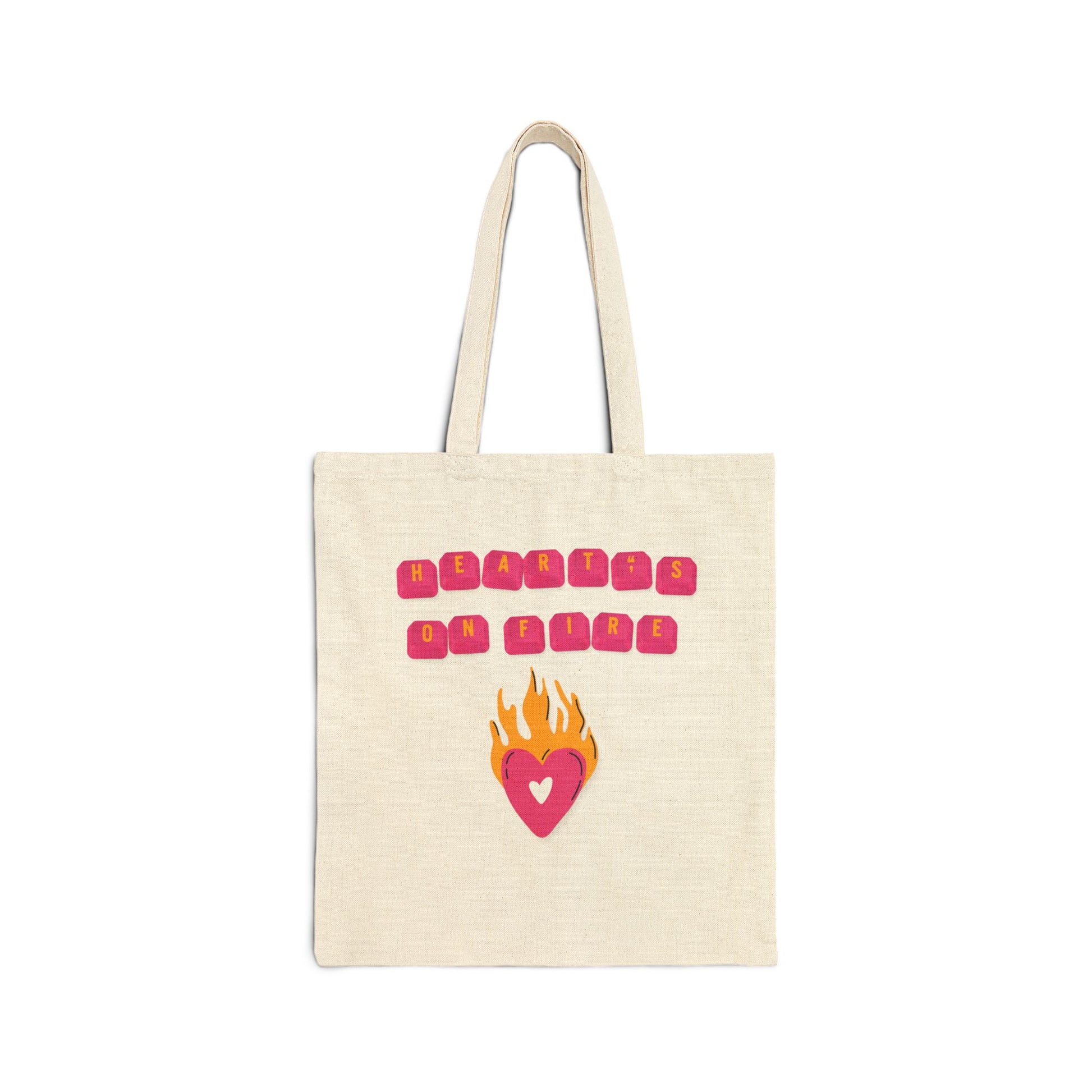 HEARTS ON FIRE Key Caps Flaming Heart Valentines Texas State Cut-Out Personalize Custom Name Cotton Canvas Tote Bag