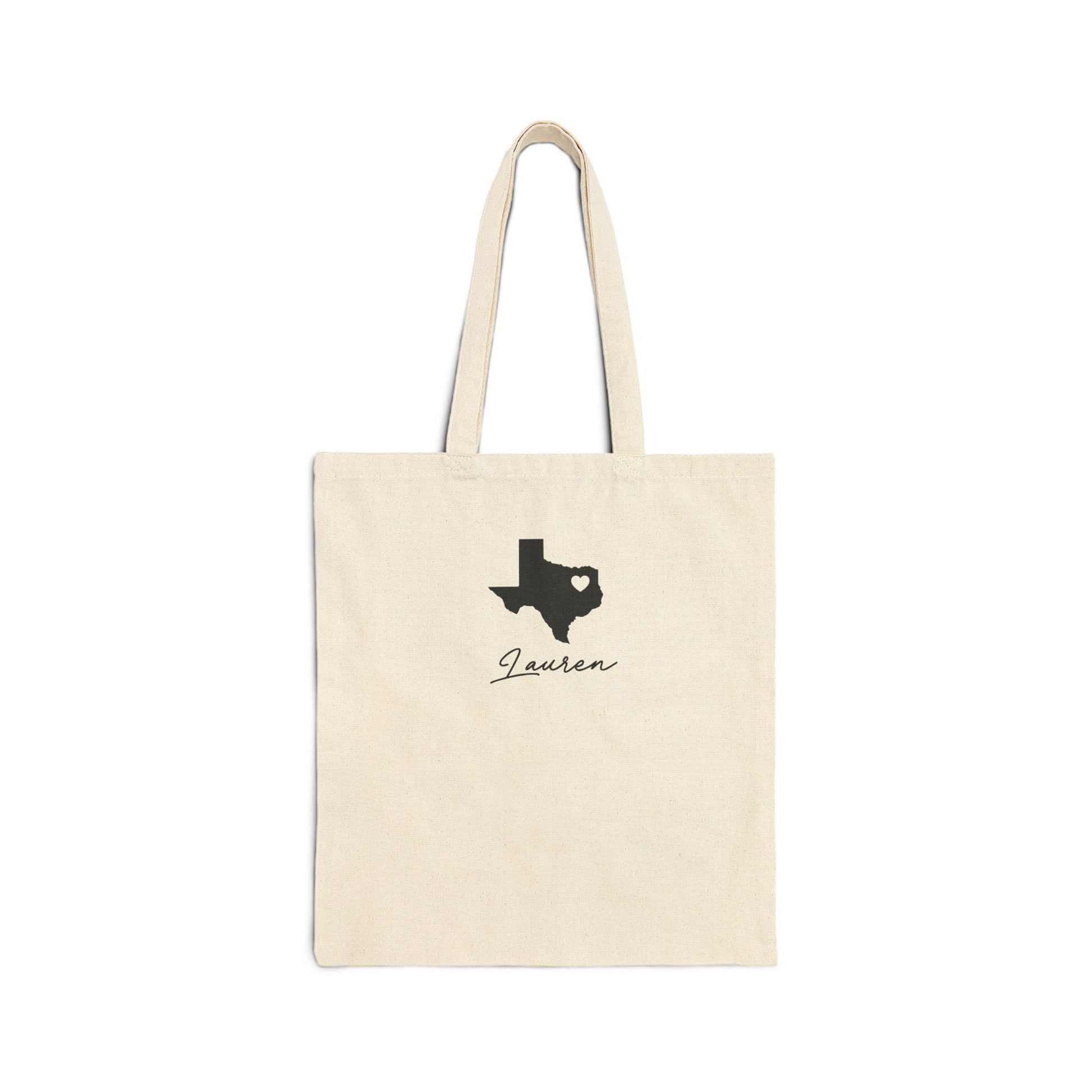 Hi. I Love You. Texas State Cut-Out Valentines Personalize Custom Name Cotton Canvas Tote Bag