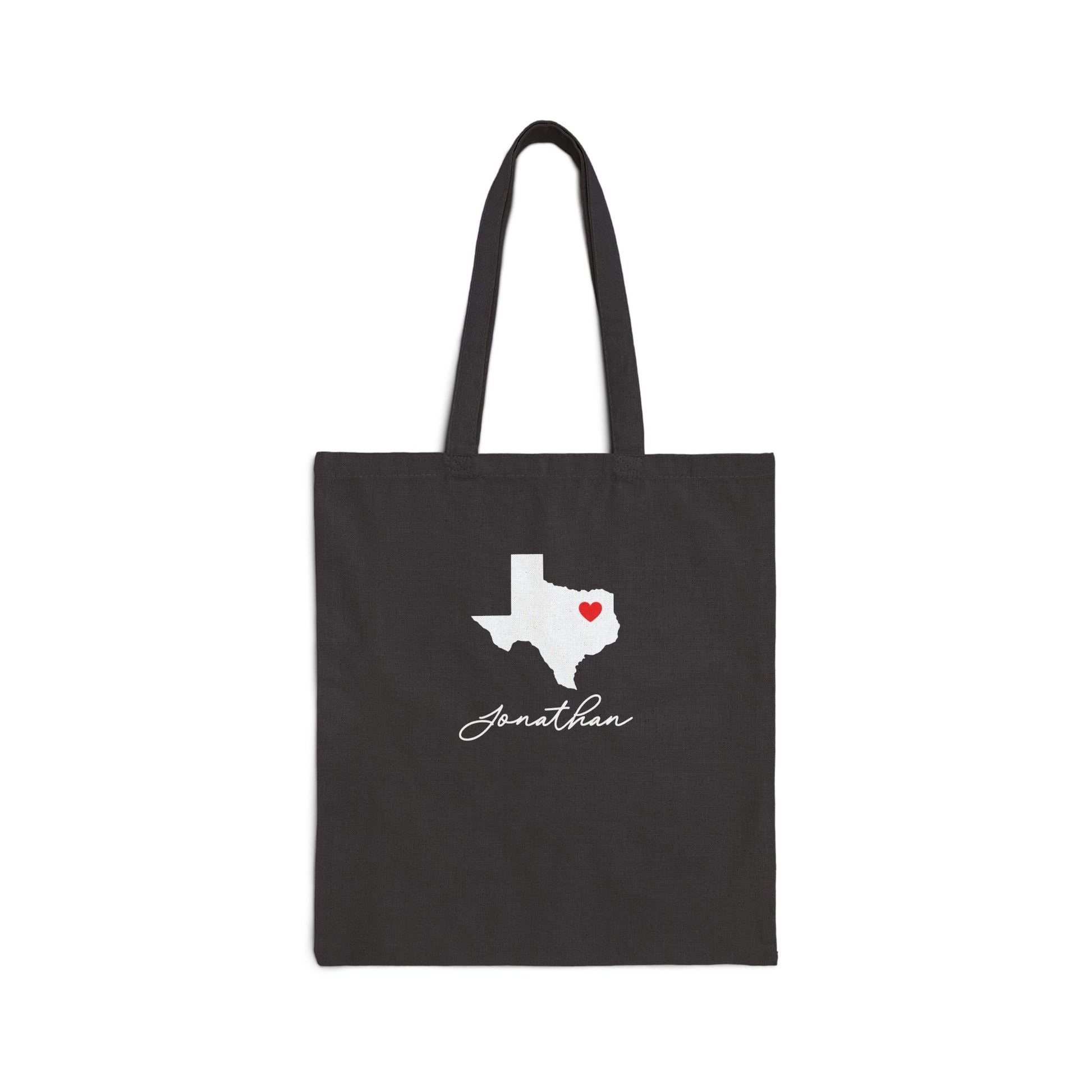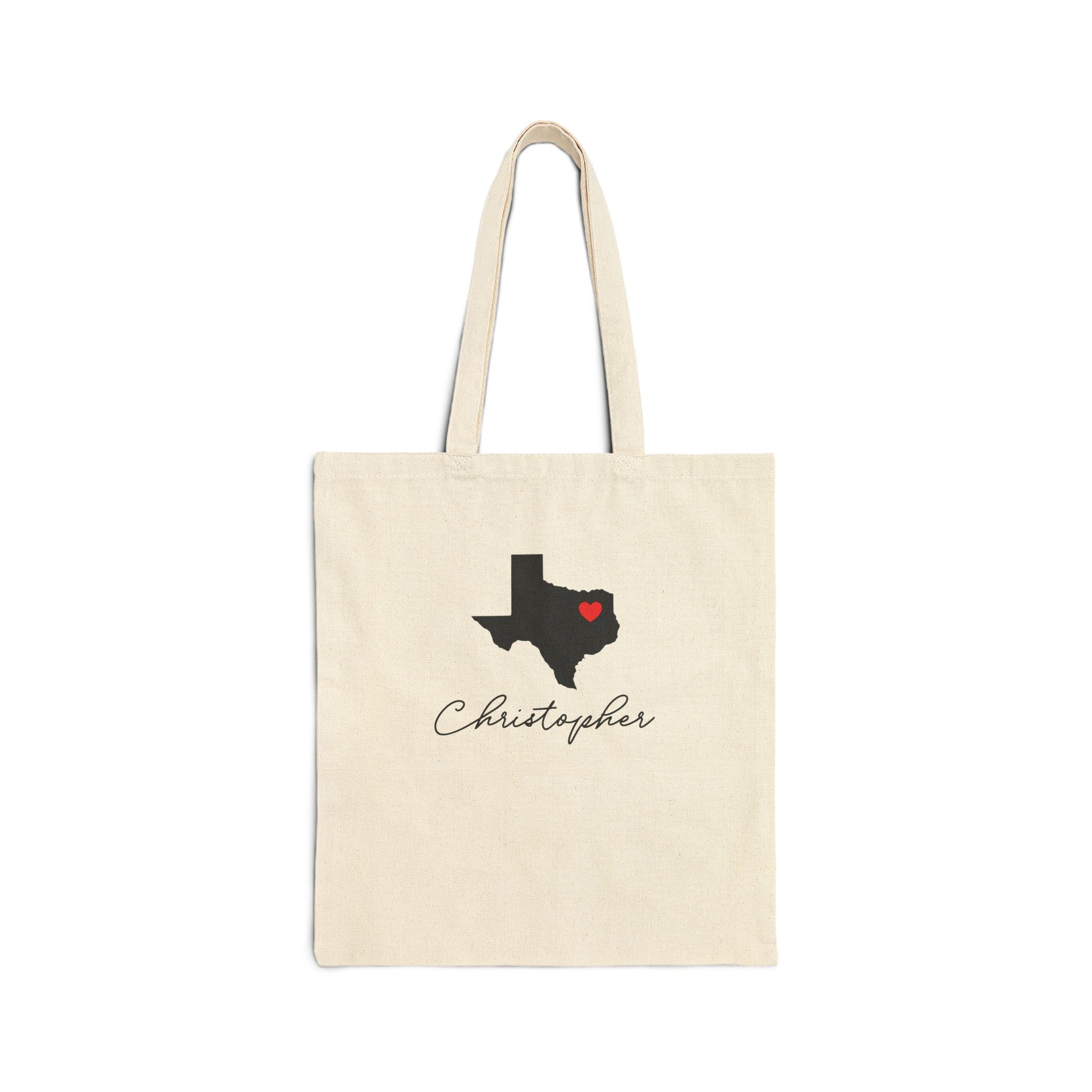 I Love You More Than Bacon Texas State Cut-Out Valentines Personalize Custom Name Cotton Canvas Tote Bag