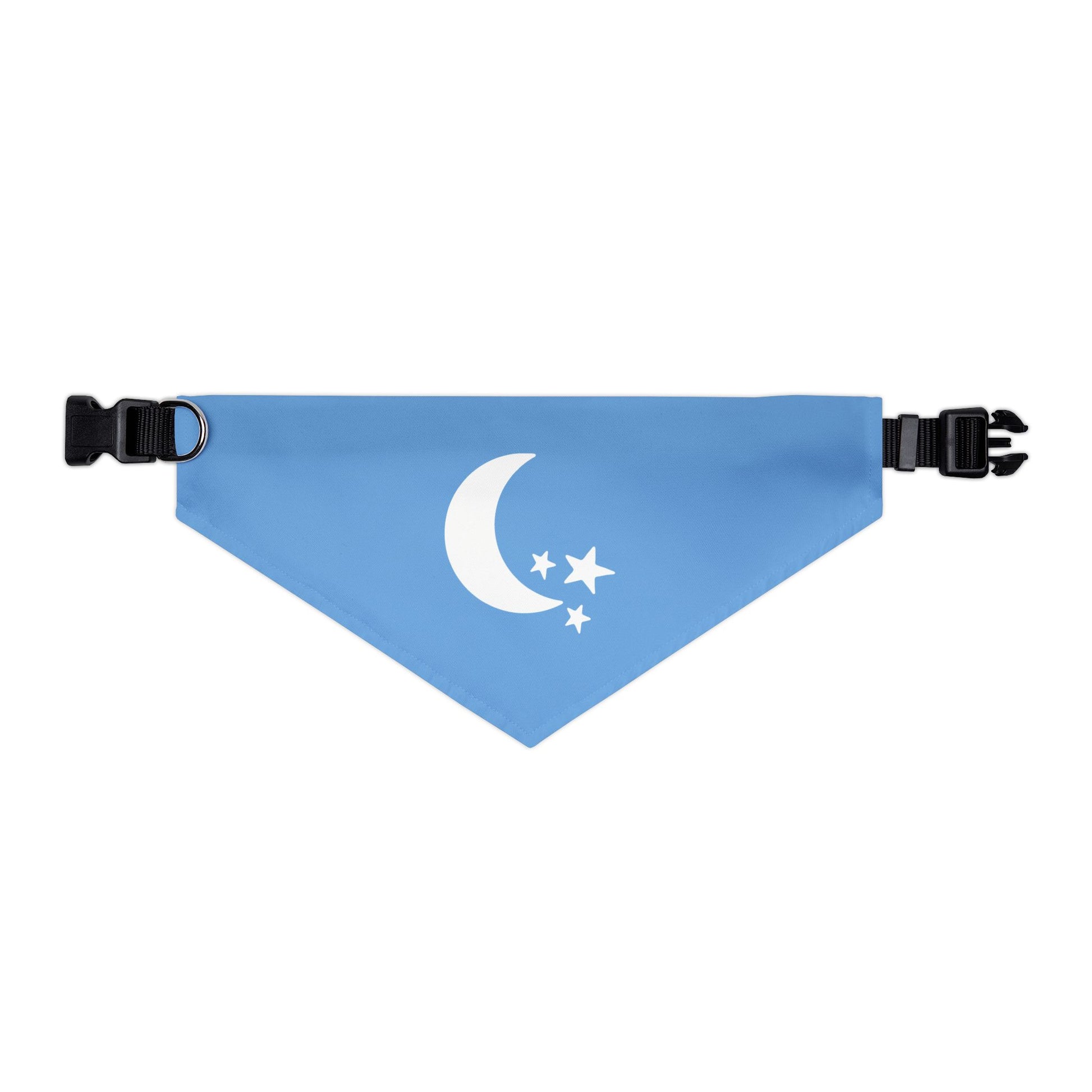 The pet bandana collar puts a fun spin on standard animal accessories. It is made of polyester duck fabric. The bandana collar is available in four sizes to fit any pet. The construction and printing is durable enough for machine washing. The collar fastening helps to keep the bandana fitting correctly, even during play.
