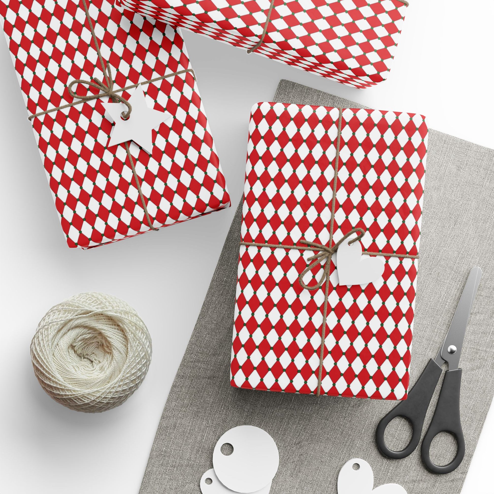 Wrap Like You Mean It — Nutcracker Drummer Red Argyle. Parade‑ready red diamonds with Nutcracker charisma—classic theater vibe meets couture paper.