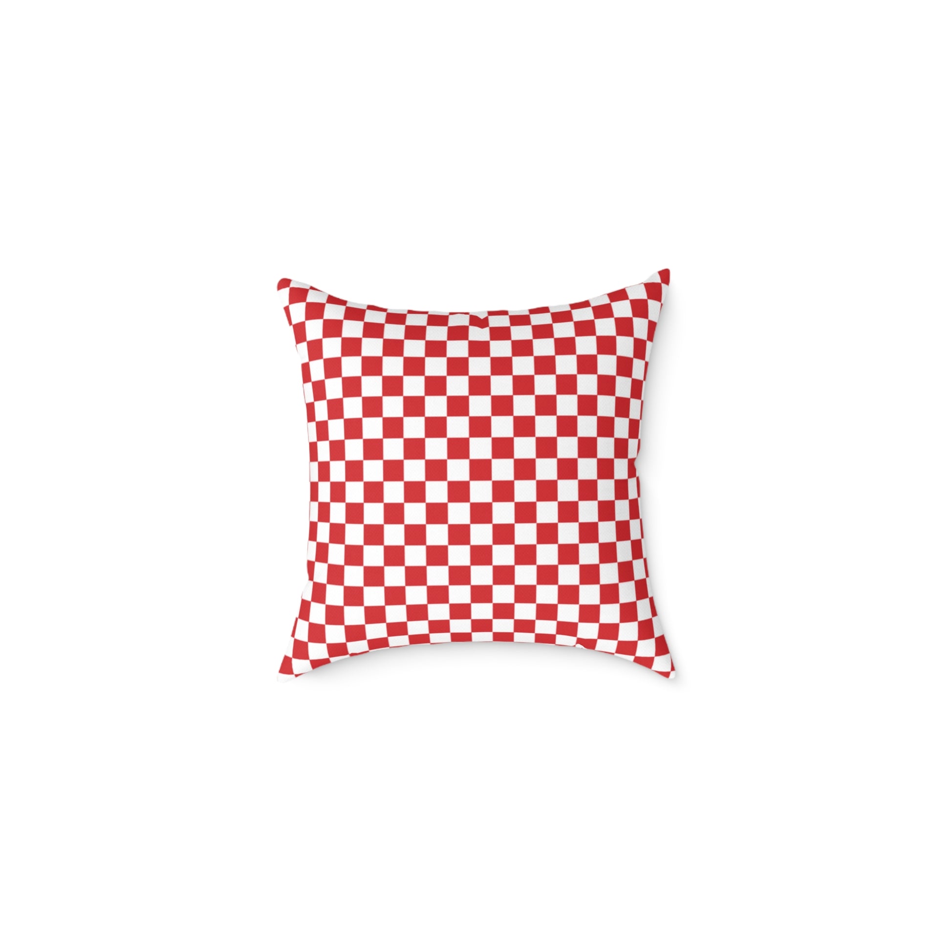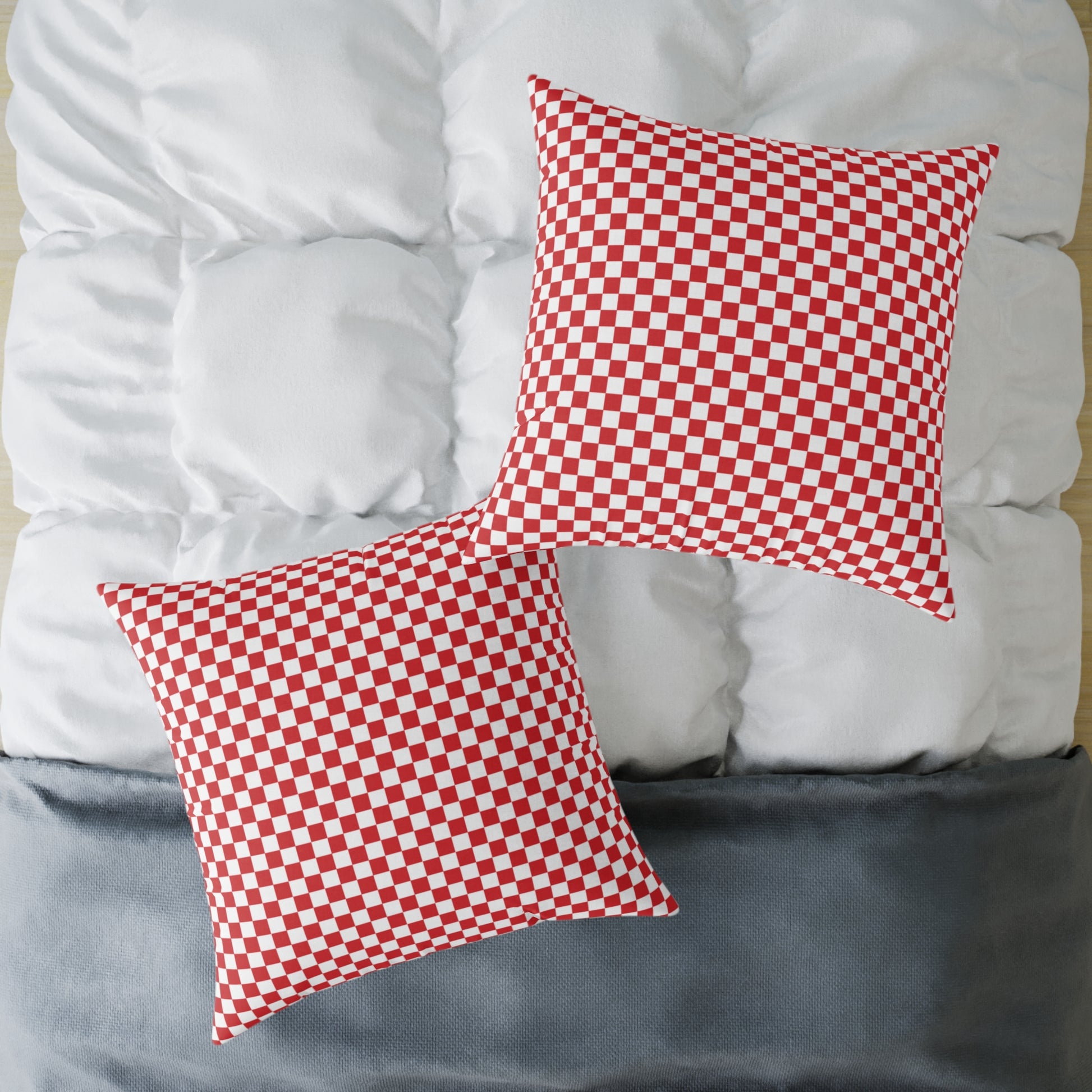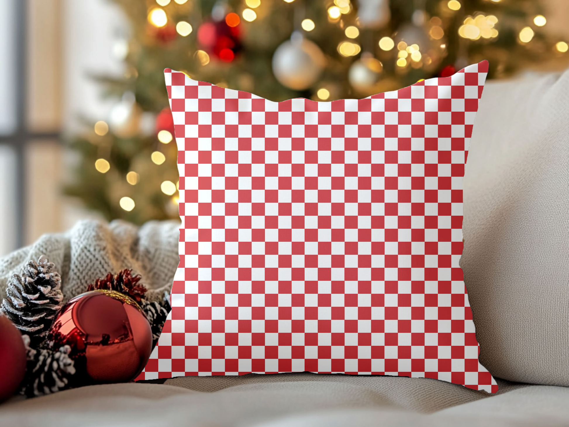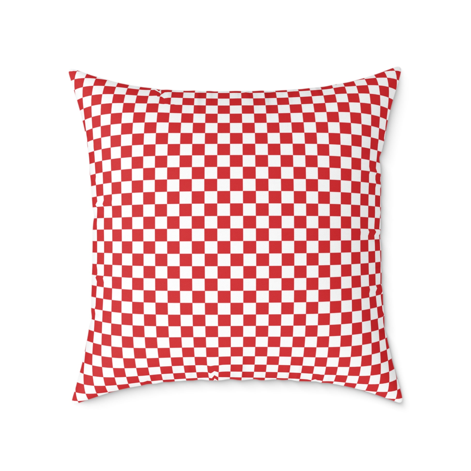 Red Check Checkered Pillow | Square Poly Canvas Home Decor, Throw Cushion for Living Room, Modern Bedroom, Wedding Gift