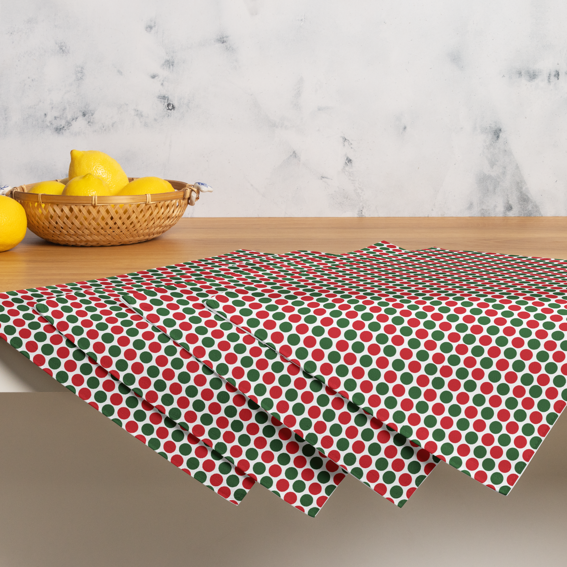 ✔️ Playful scattered red & green dot design