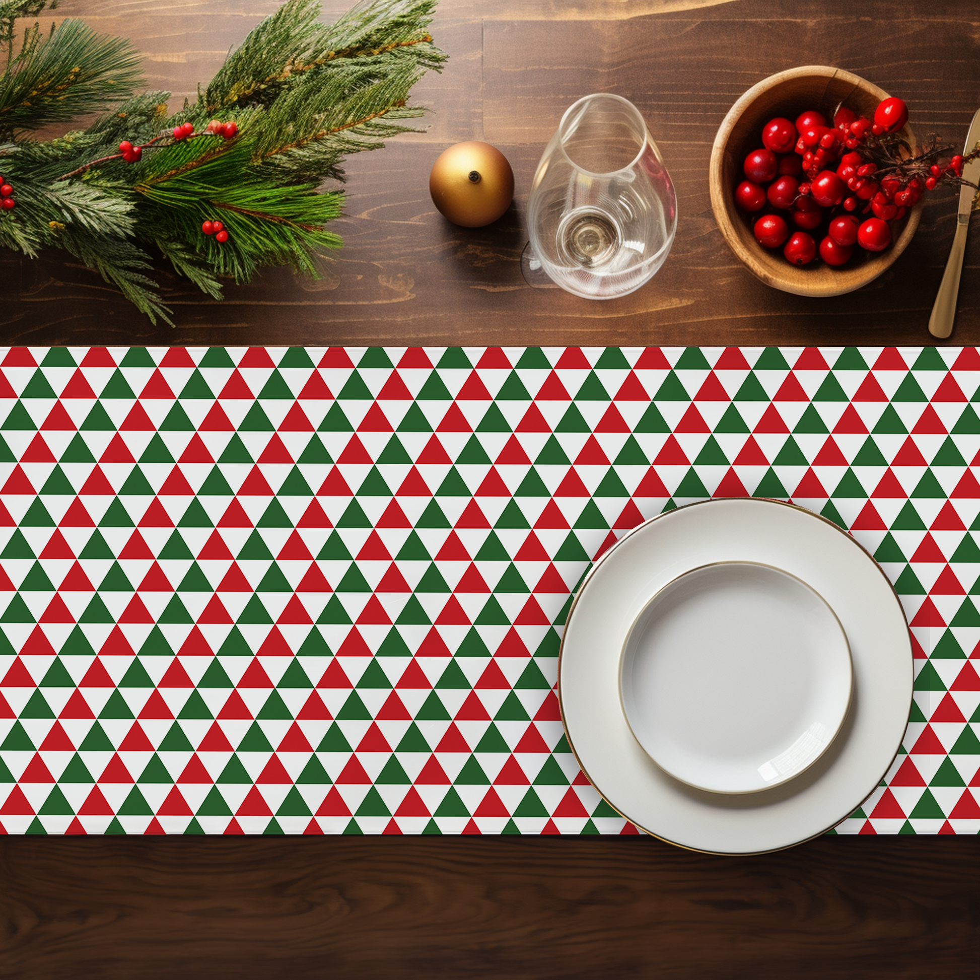 Red & Green Triangle Christmas Table Runner | Festive Holiday Farmhouse Dining Room Décor, Bold Geometric Table Accent