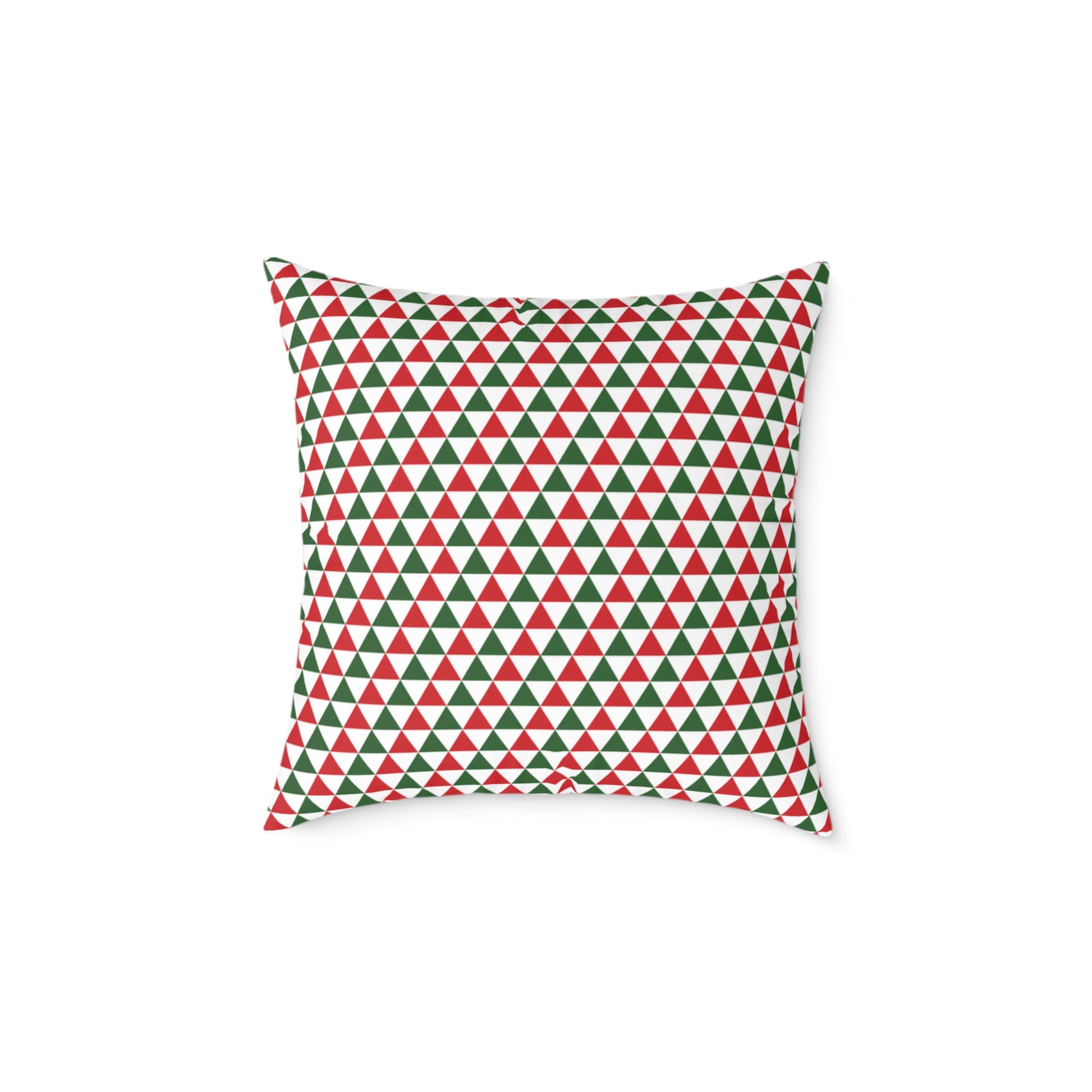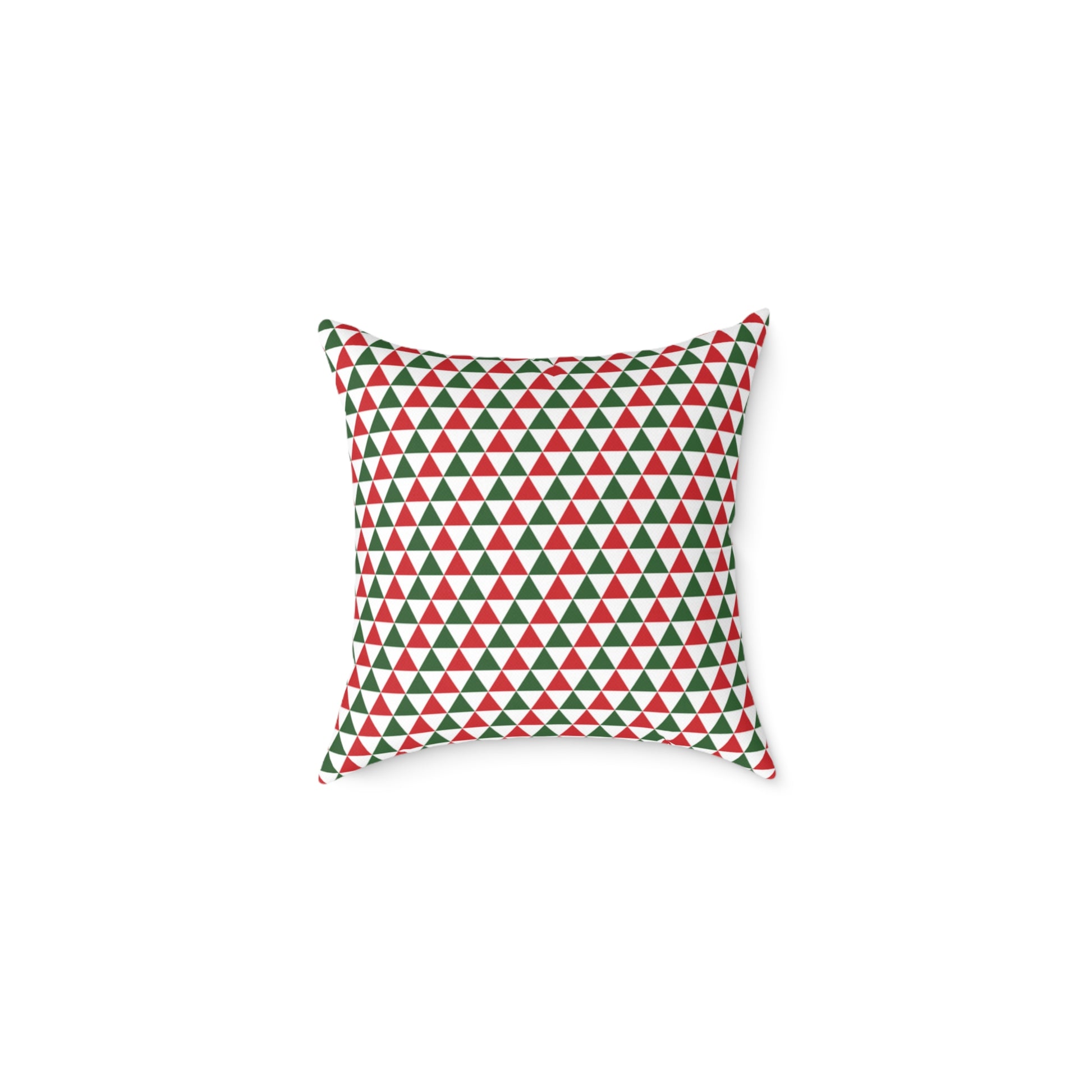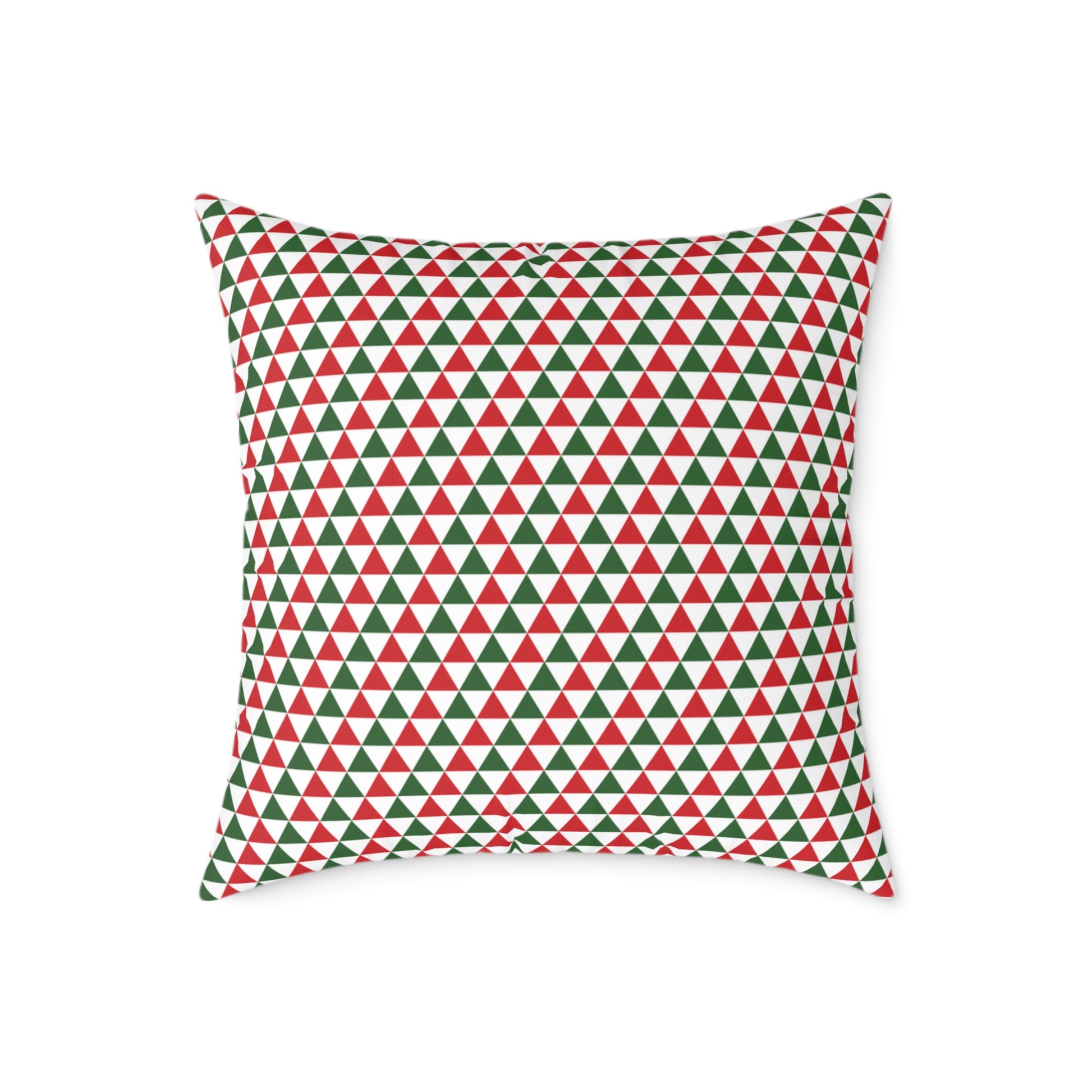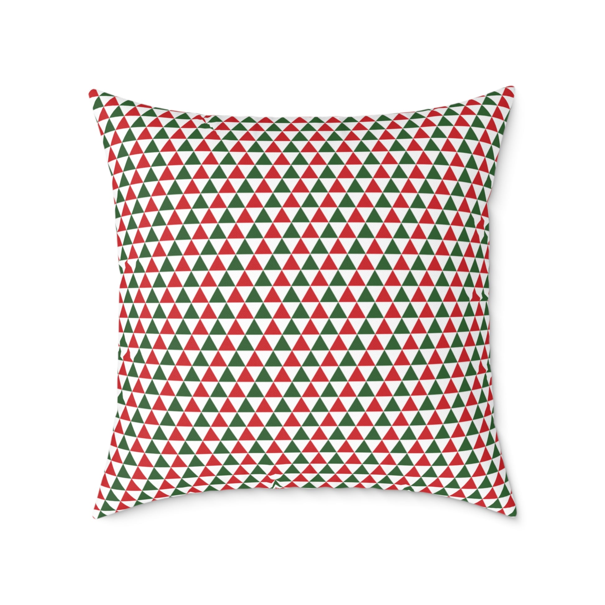 Red & Green Triangle Party Christmas Decorative Pillow | Double‑Sided Poly Canvas Cushion, 5 Sizes, Vibrant Holiday Décor