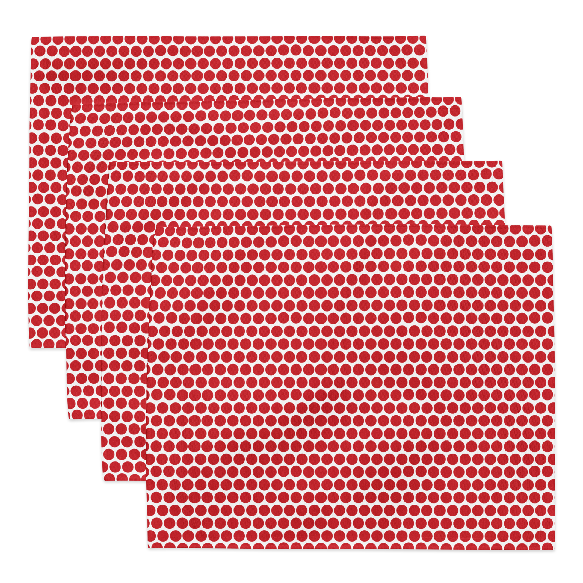 Red Polka Dot Polyester Placemats | Christmas Holiday Dining Décor, Bold Festive Farmhouse Washable Table Mat Set