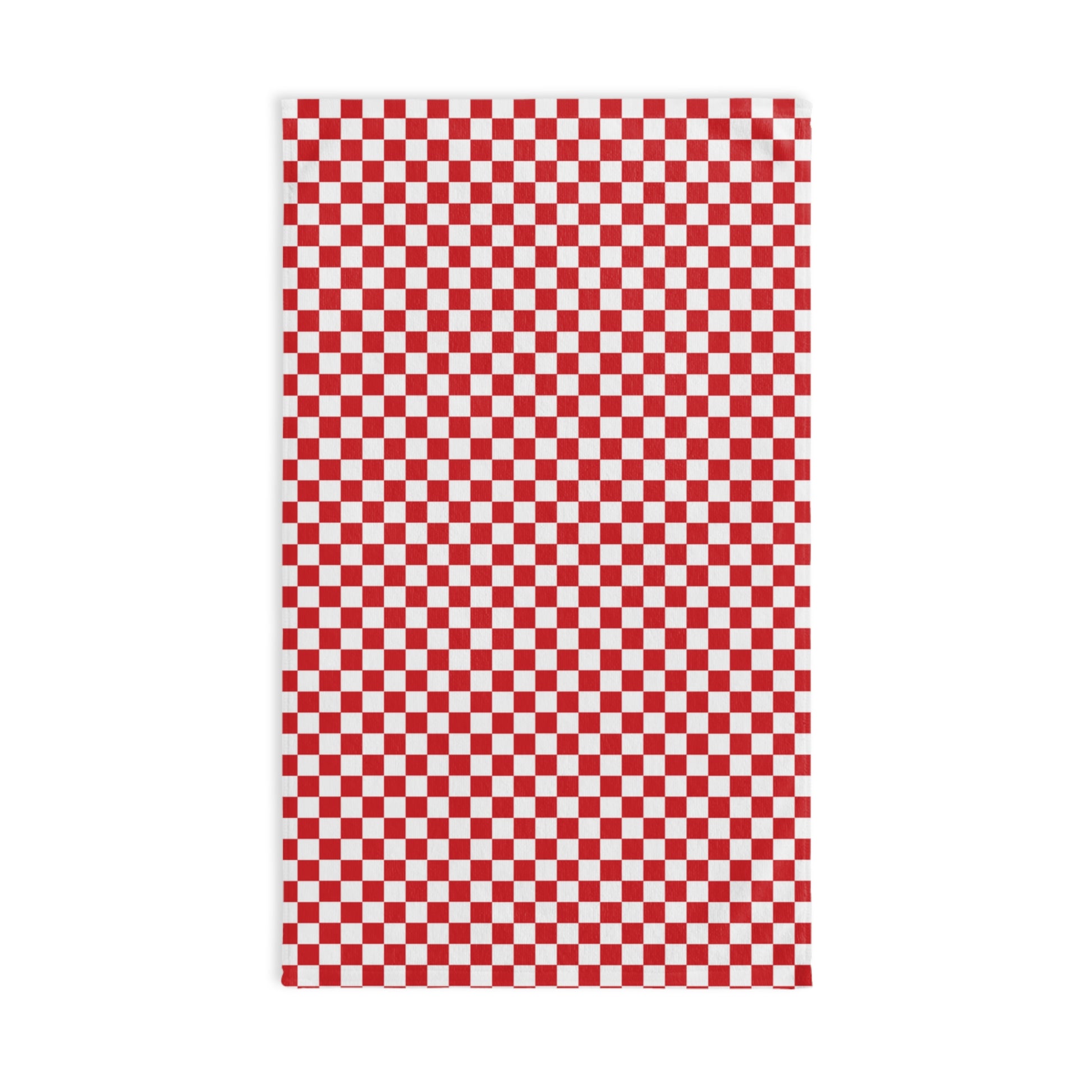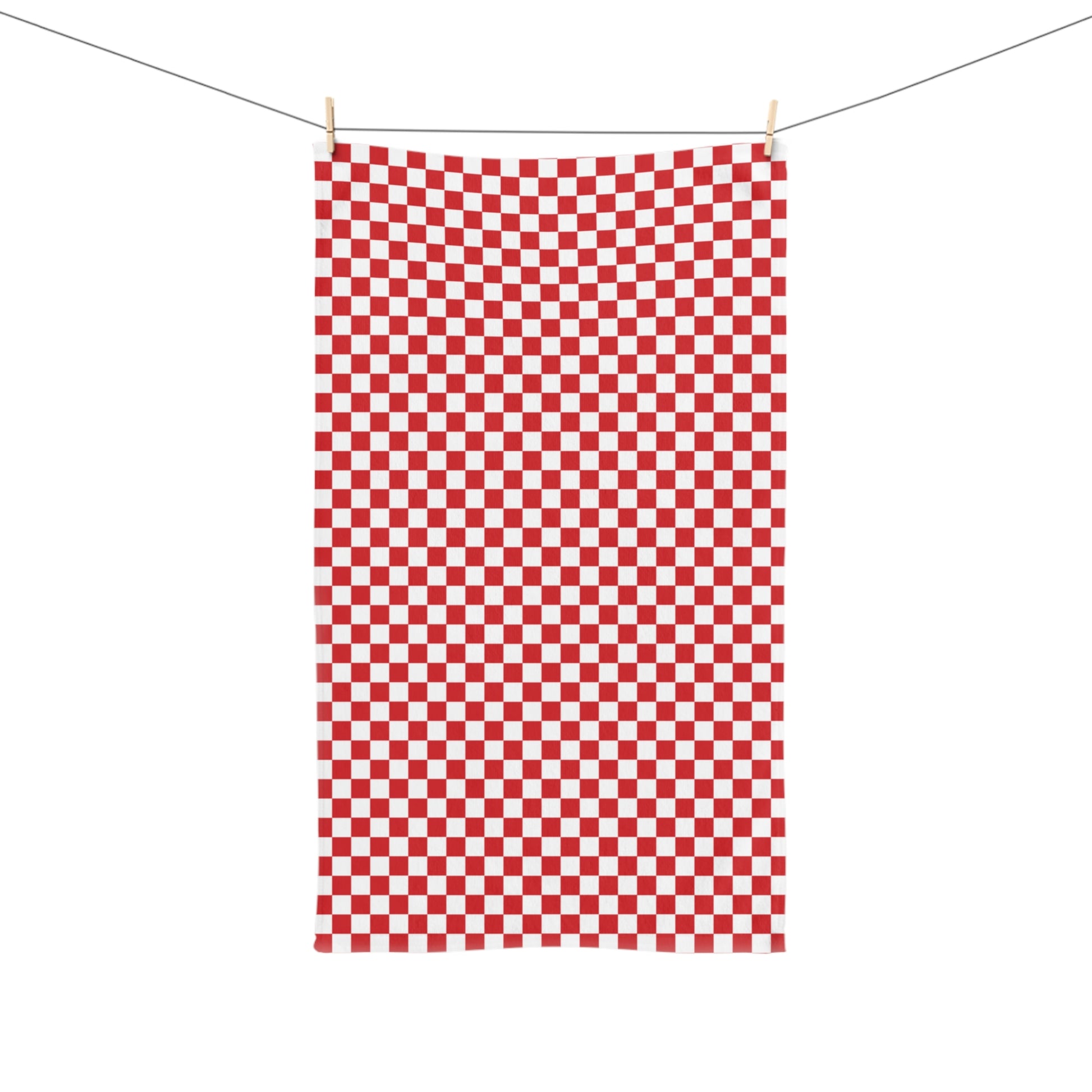 Red & White Check Holiday Hand Towel | Soft Cotton Back, Polyester Front, Festive Home Décor