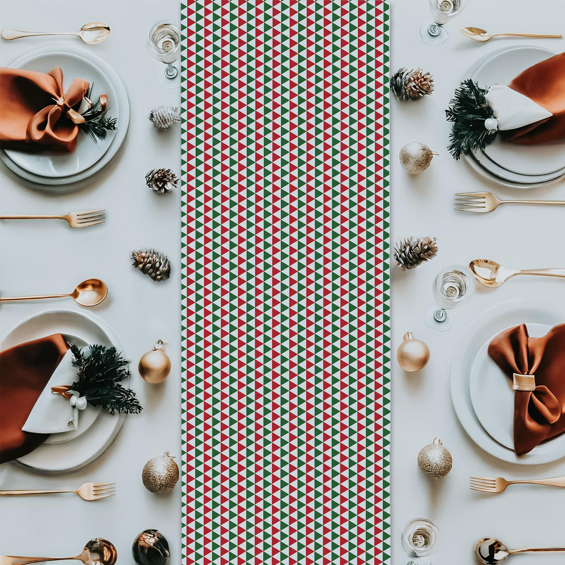 Whether styled for a rustic farmhouse gathering or a sleek modern celebration, this runner pairs beautifully with greenery, candles, or metallic accents. It’s a Christmas classic with a cheeky geometric twist.