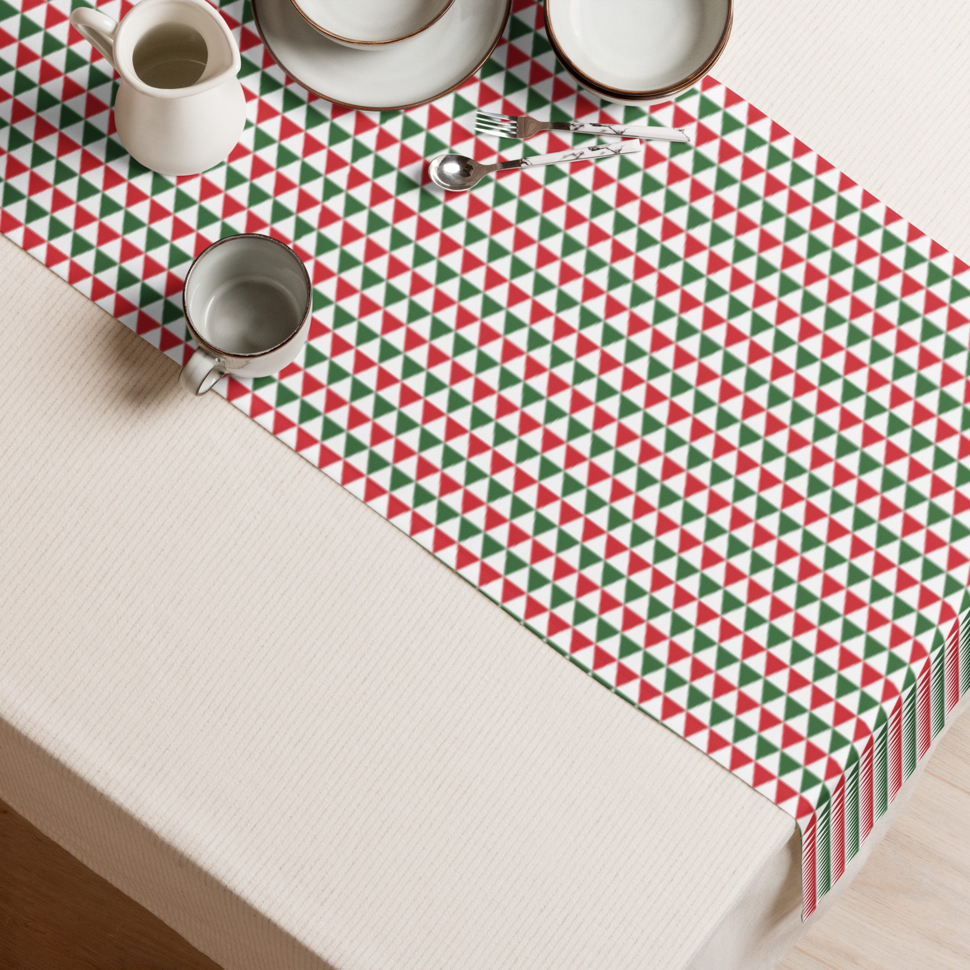 Striped Red & Green Triangle Christmas Table Runner | Rustic Holiday Dining Room Décor, Festive Geometric Farmhouse Accent