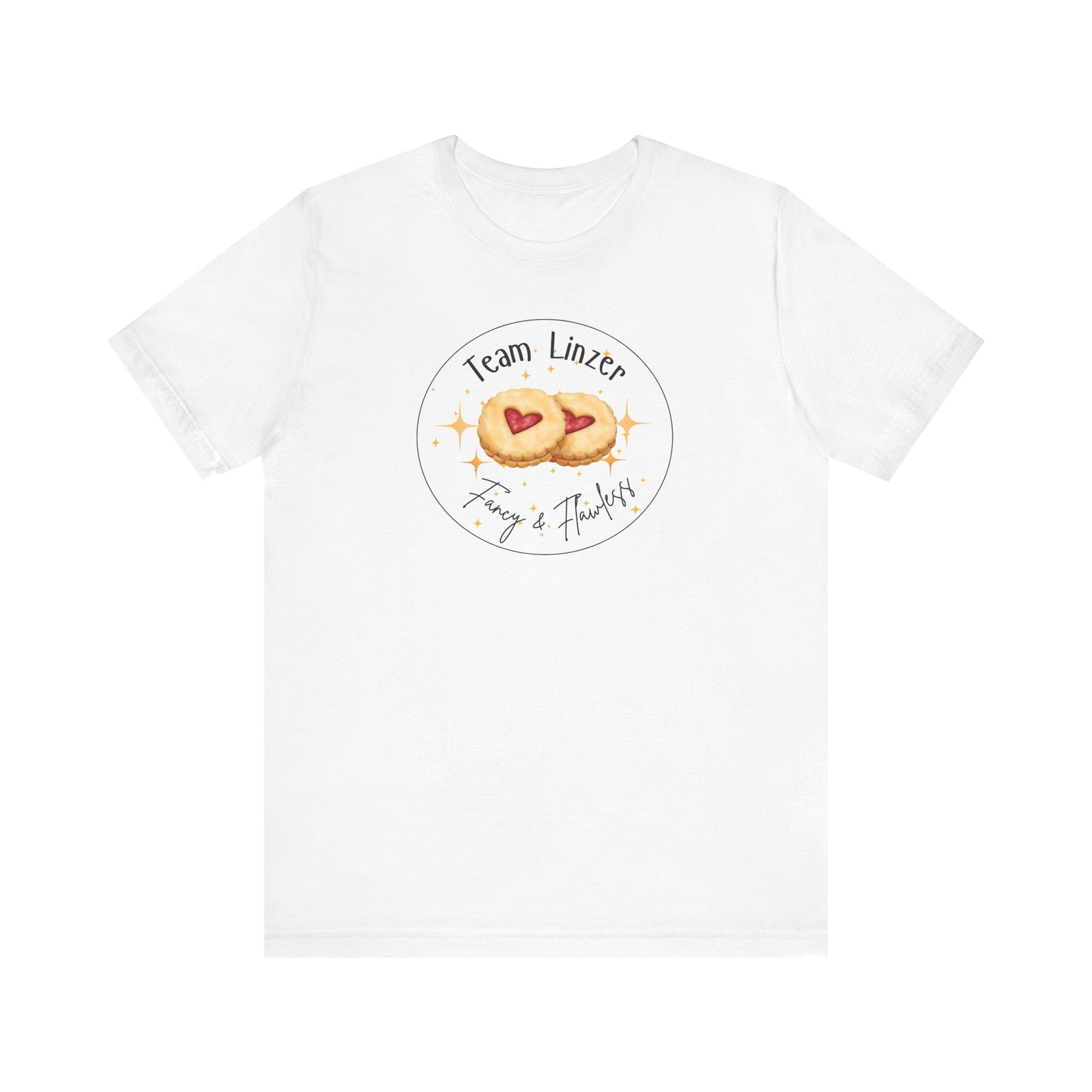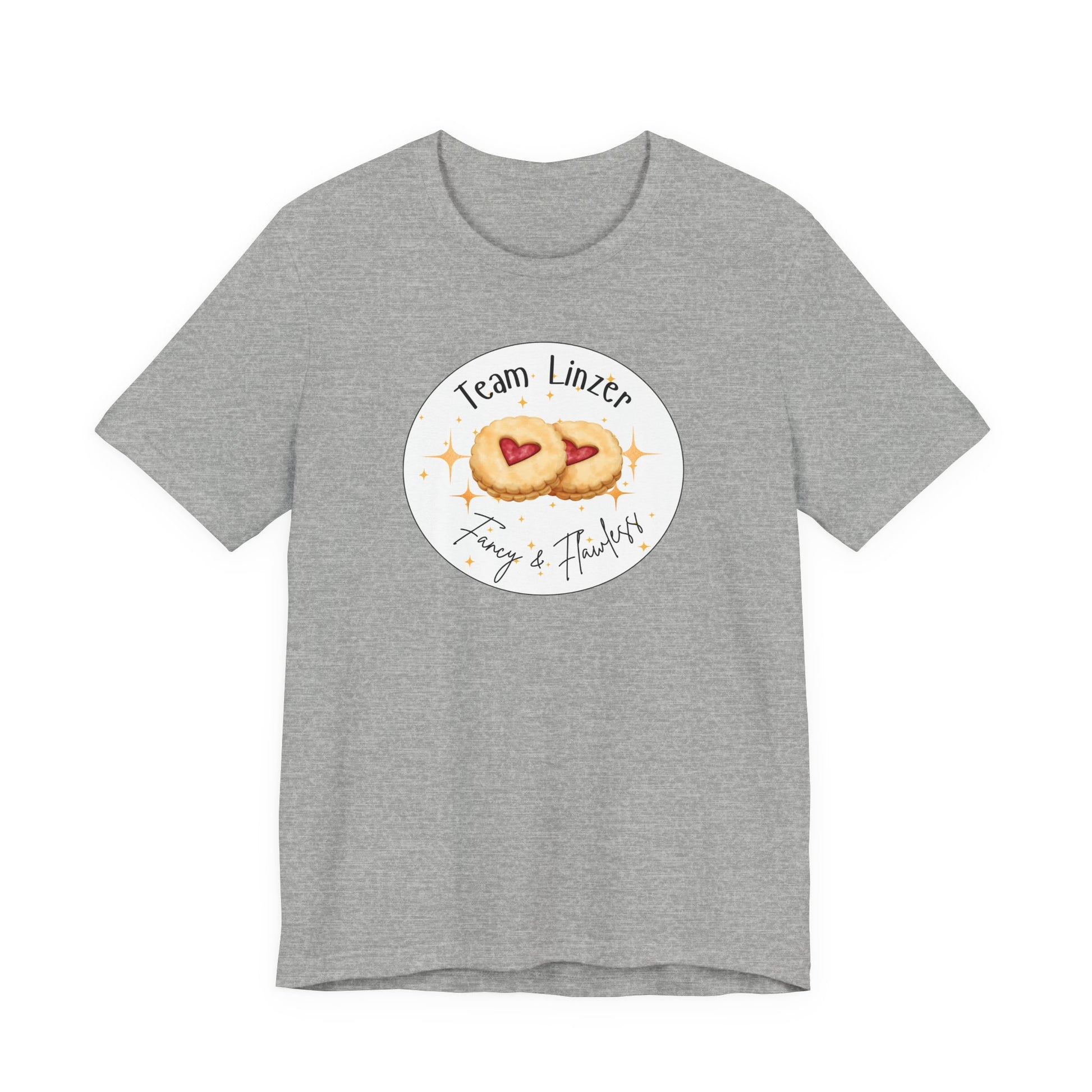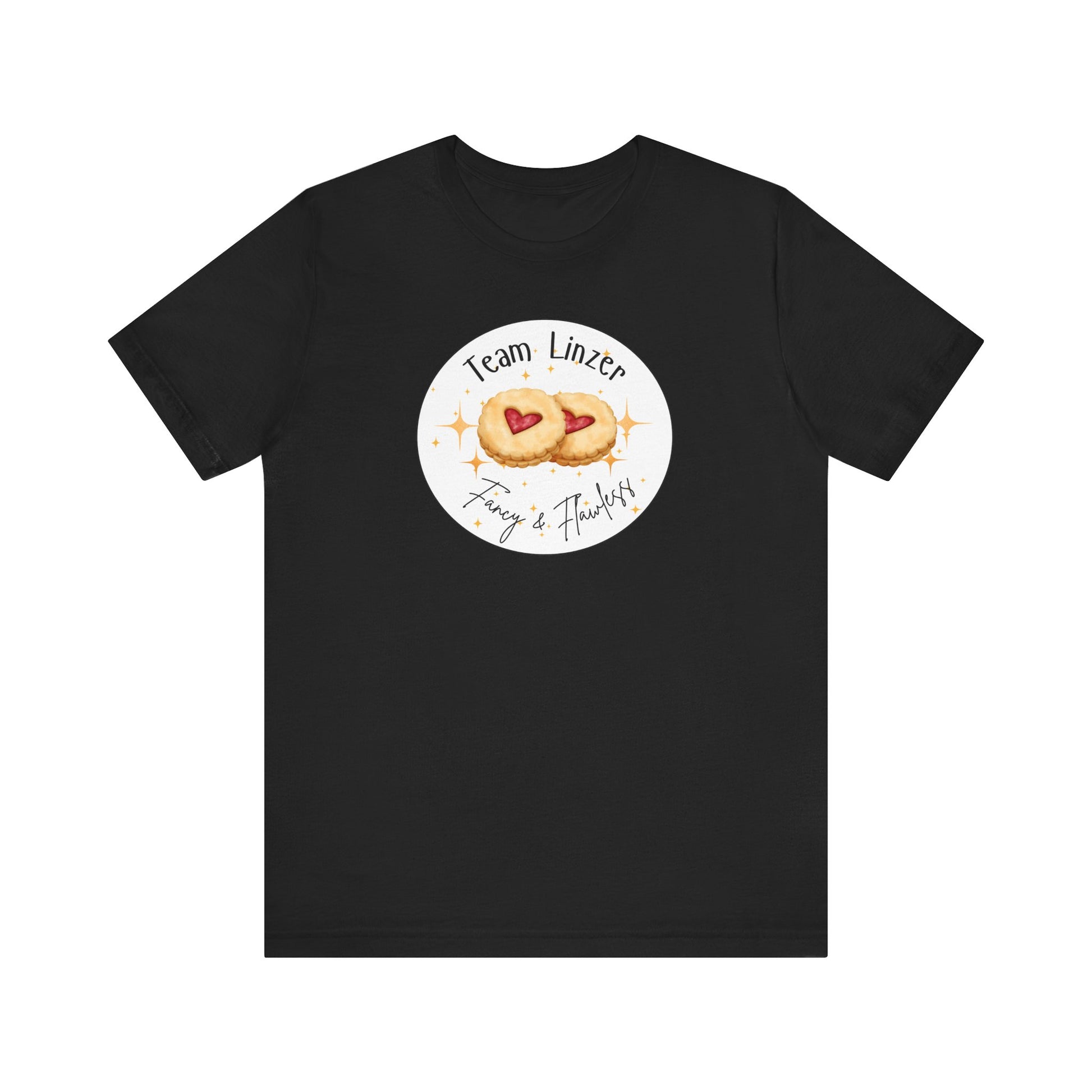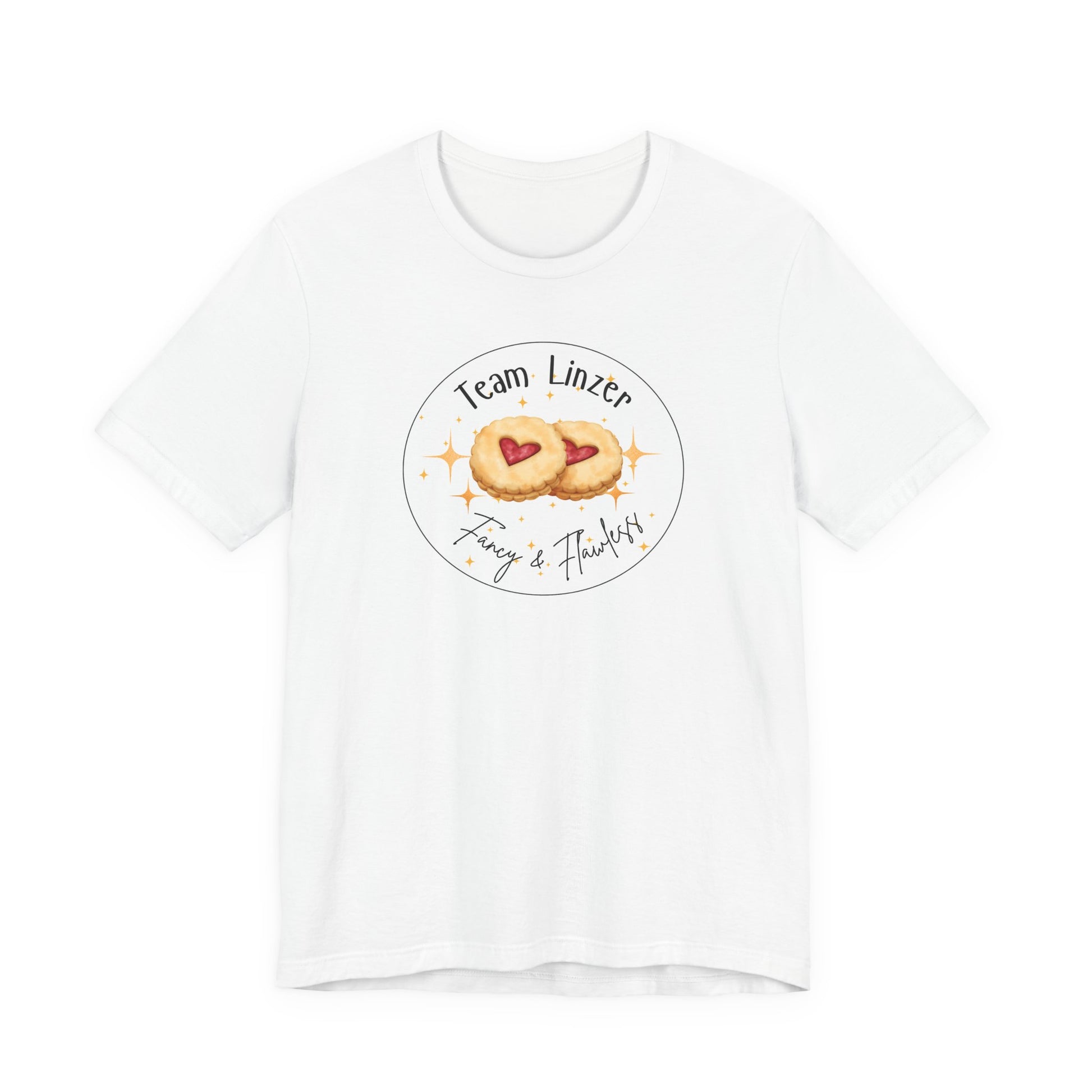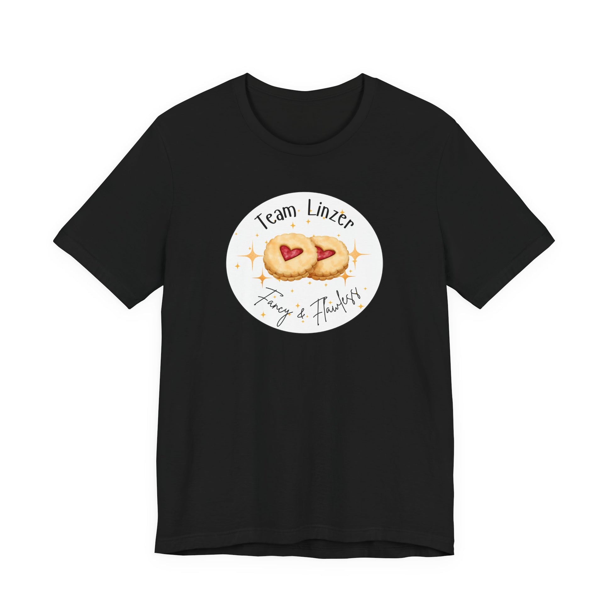Team Linzer isn’t just a cookie—it’s a statement. This Christmas tee features the iconic sandwich cookie with a peekaboo heart and a generous snowing of powdered sugar. It’s for those who love elegance with a side of sweetness (and a whole lot of jam). With heart-shaped cutouts and jam that gleams like holiday jewels, “Team Linzer” is fancy and flawless—and not afraid to show it. This design’s got classic charm, timeless flavor, and a high-fashion attitude wrapped in powdered sugar. The tagline? “Fancy & flawless.”