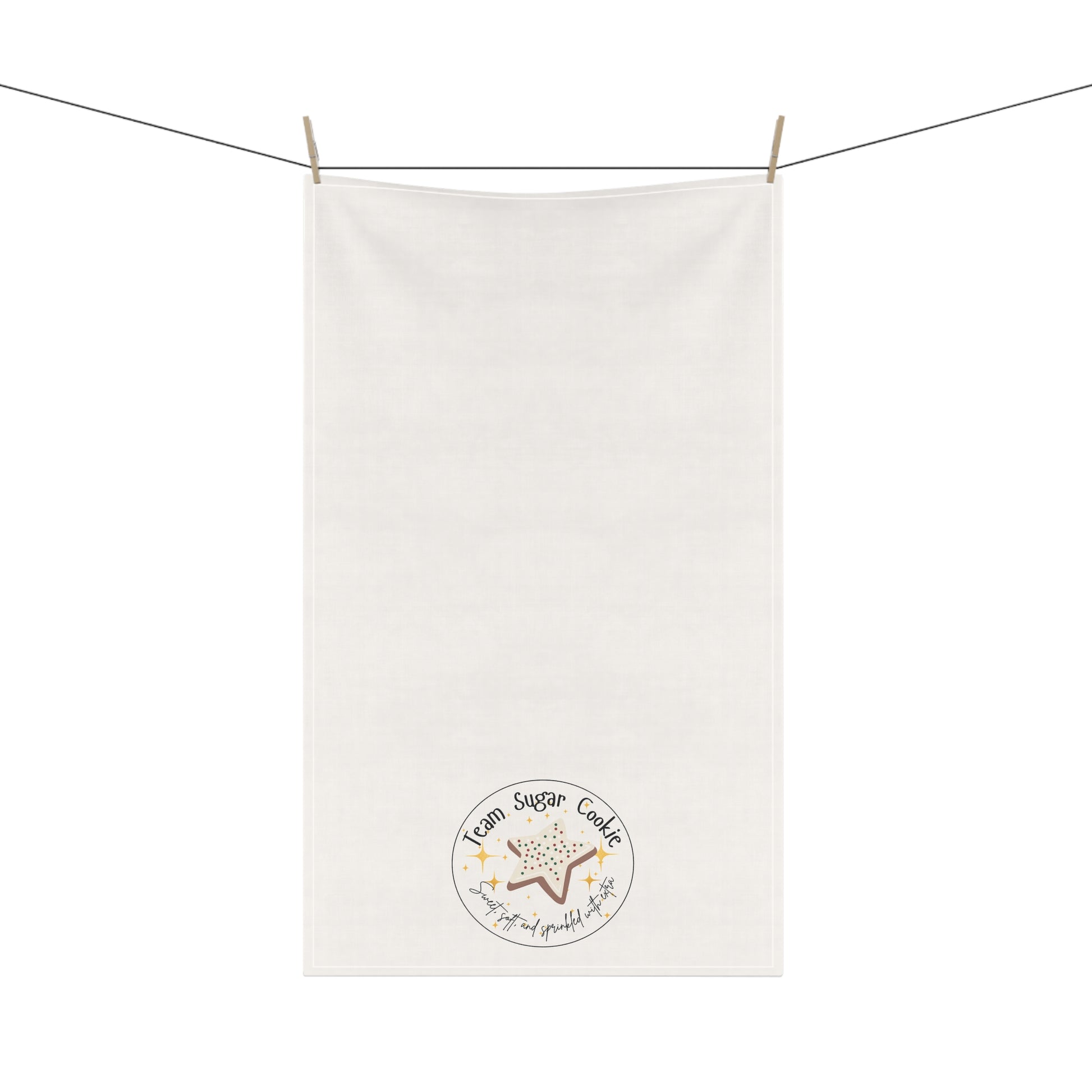 Add a dash of holiday sweetness to your kitchen or guest bath with this cheerful Team Sugar Cookie hand towel. Soft, absorbent, and totally adorable—it’s almost too cute to use (but you totally should). Our “Team Sugar Cookie” design is your official ticket to Santa’s sweet side. Featuring a sparkling sugar-dusted star cookie and the tagline “Sweet, soft, and sprinkled with extra,” this playful holiday tee (and its mug, magnet, towel & more) rallies the fluffiest fans of all.