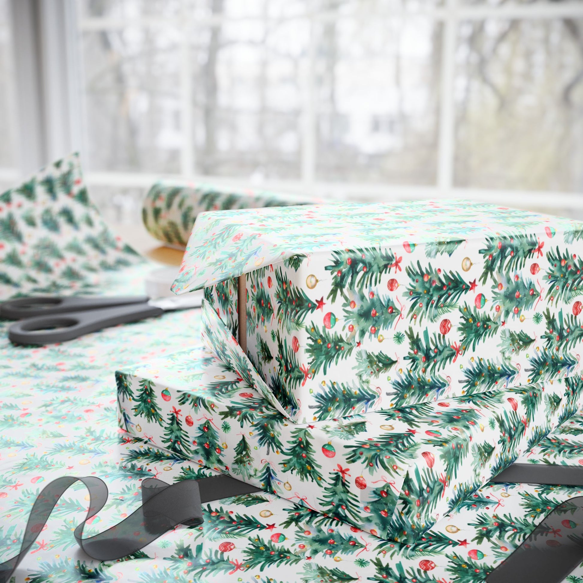 Watercolor Christmas Trees Wrapping Paper