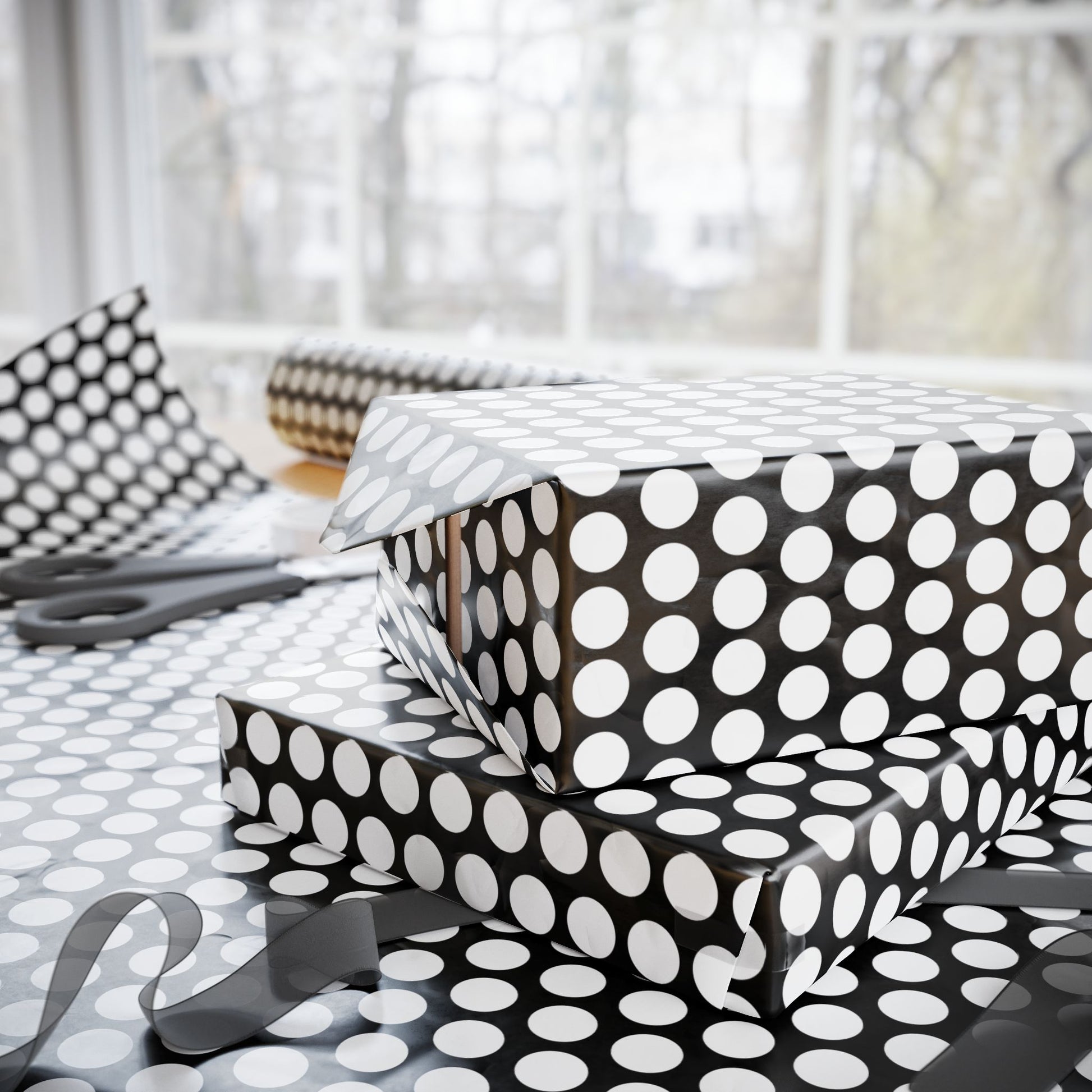 White Polka Dot on Black Wrapping Paper | Luxury Matte or Glossy Gift Wrap, 90gsm Fine Art Paper, 3 Sizes
