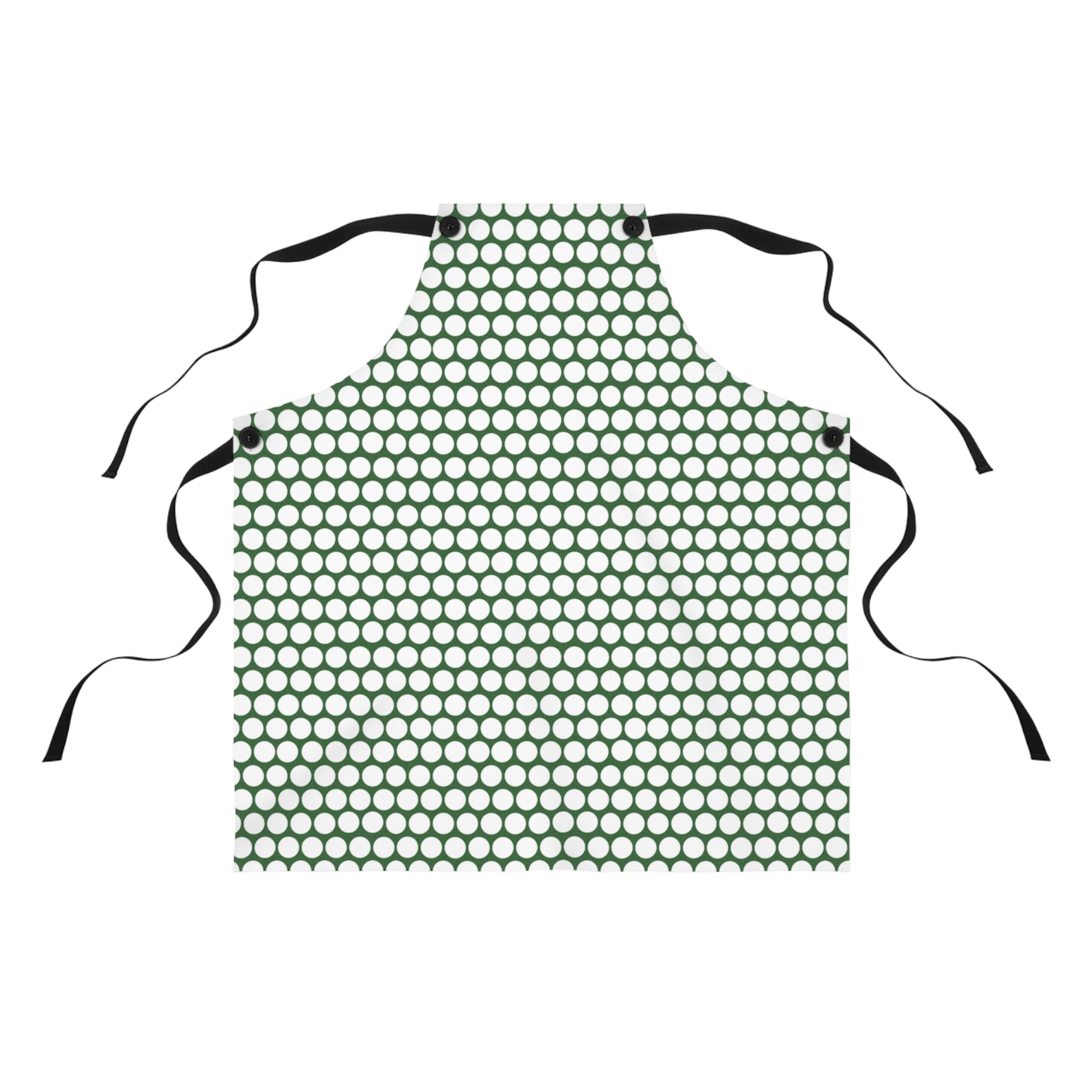 White Polka Dot on Green Holiday Apron | Lightweight 100% Polyester Twill, Detachable Black Twill Straps