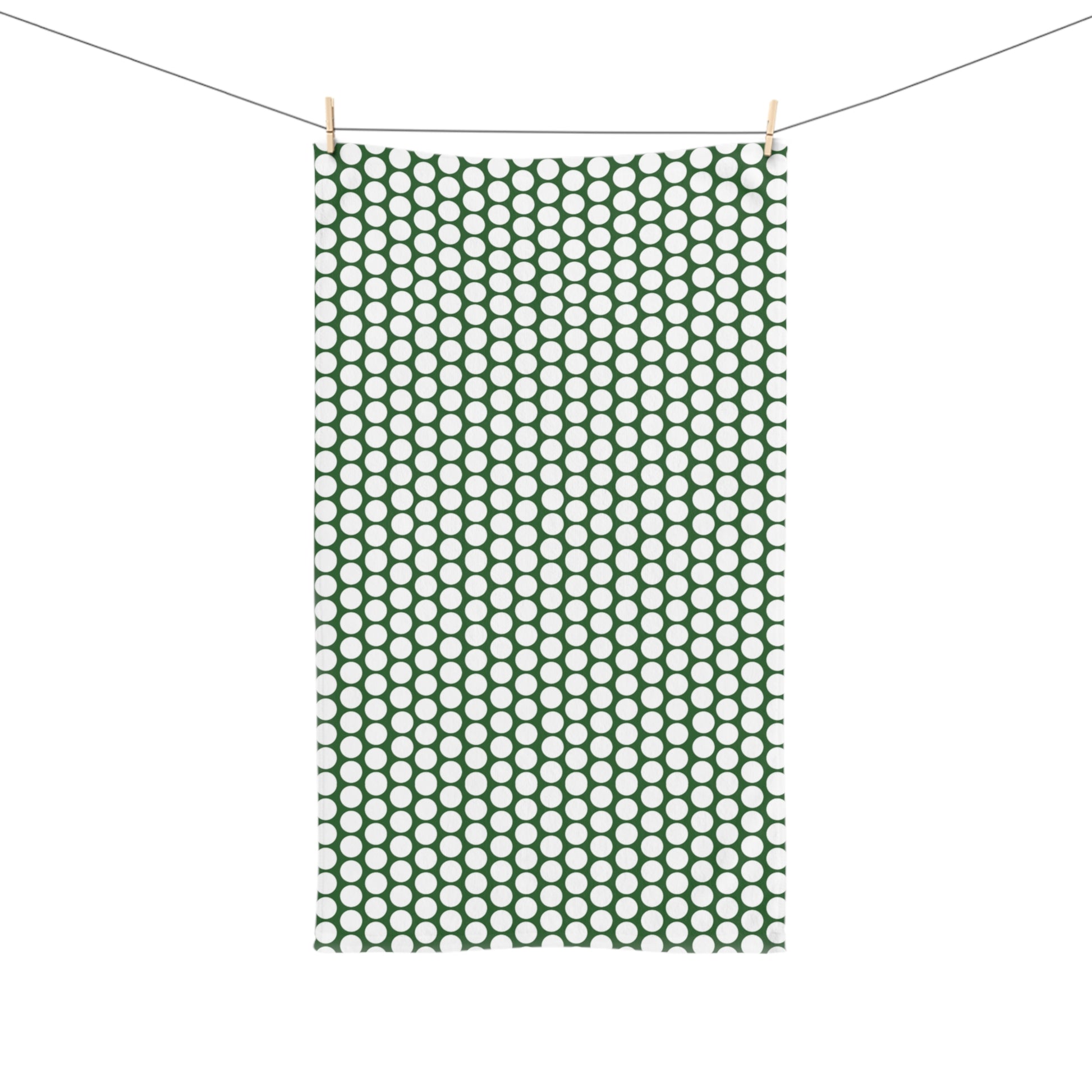 White Polka Dot on Green Holiday Hand Towel | Soft Cotton Back, Polyester Front, Festive Home Décor
